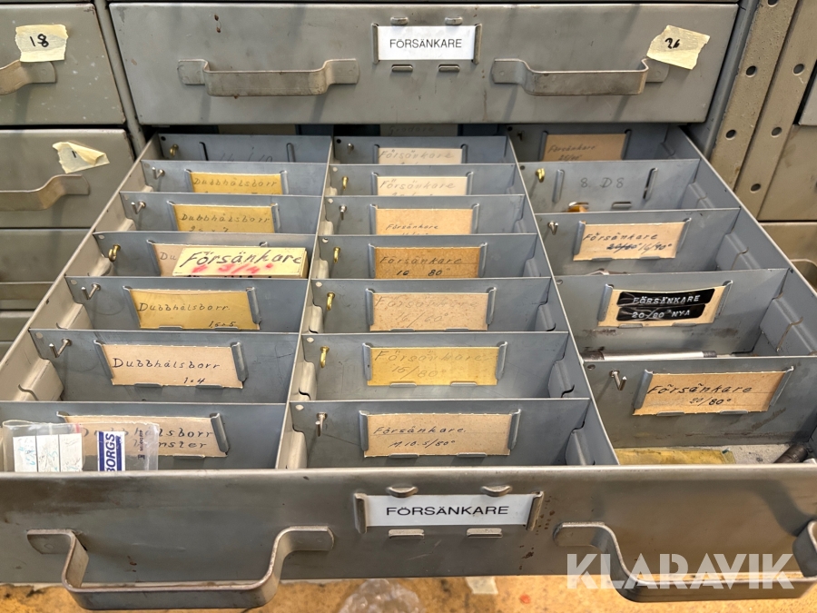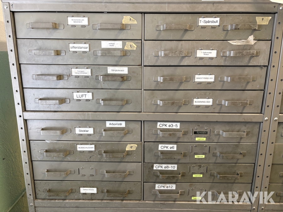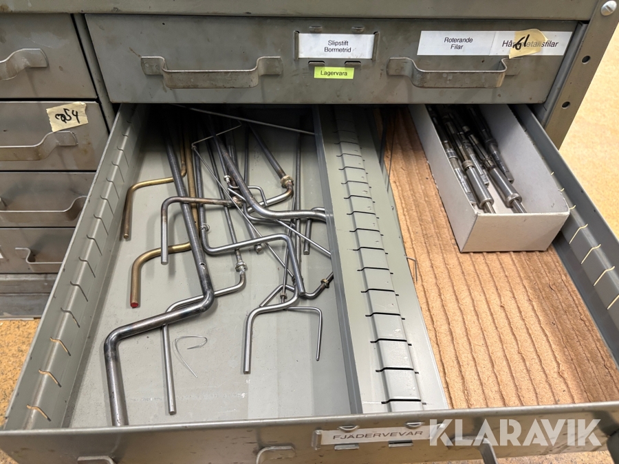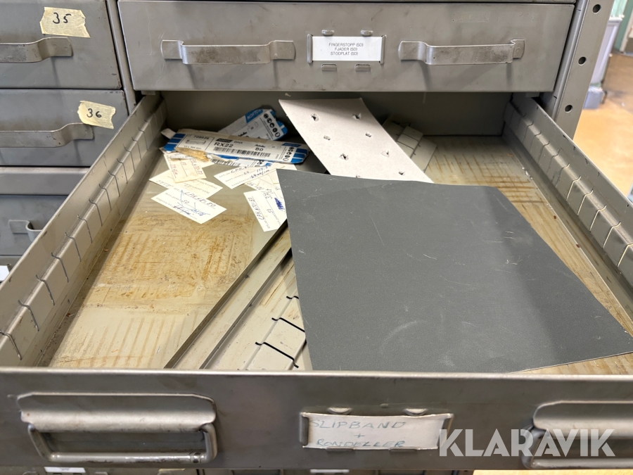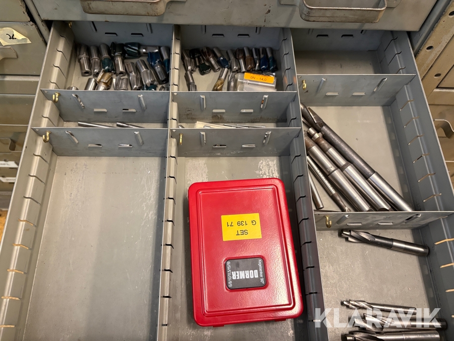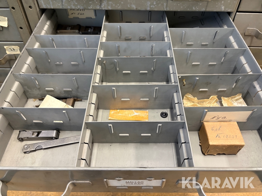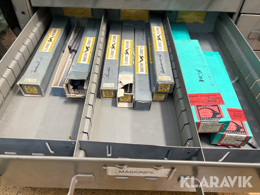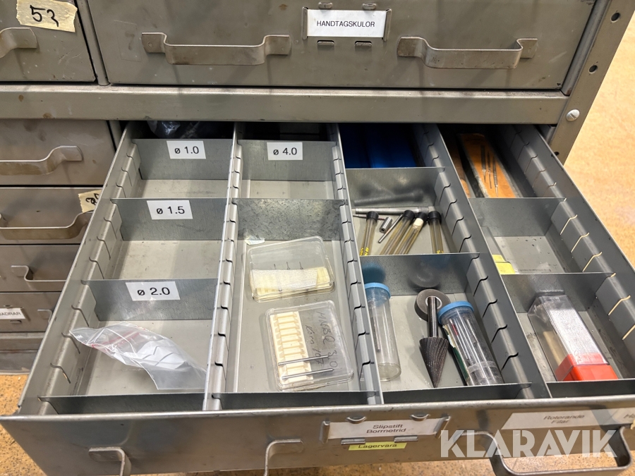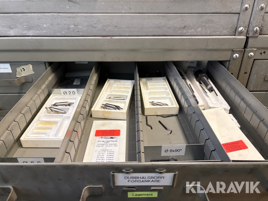 Plåtskåp med diverse utrustning för verktygsbearbetning