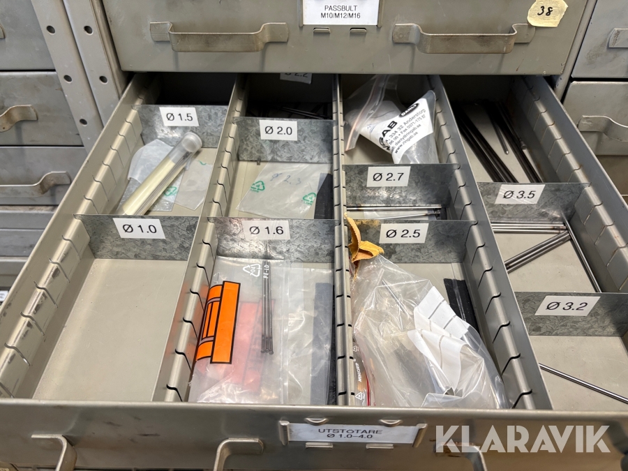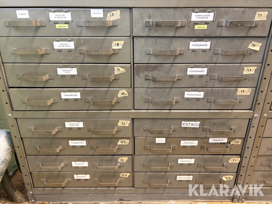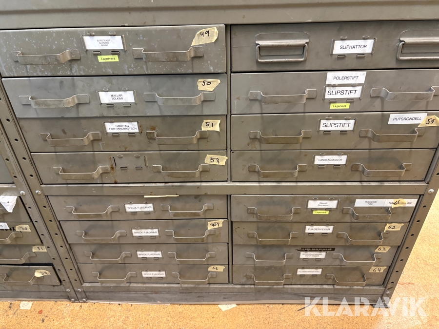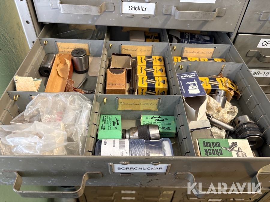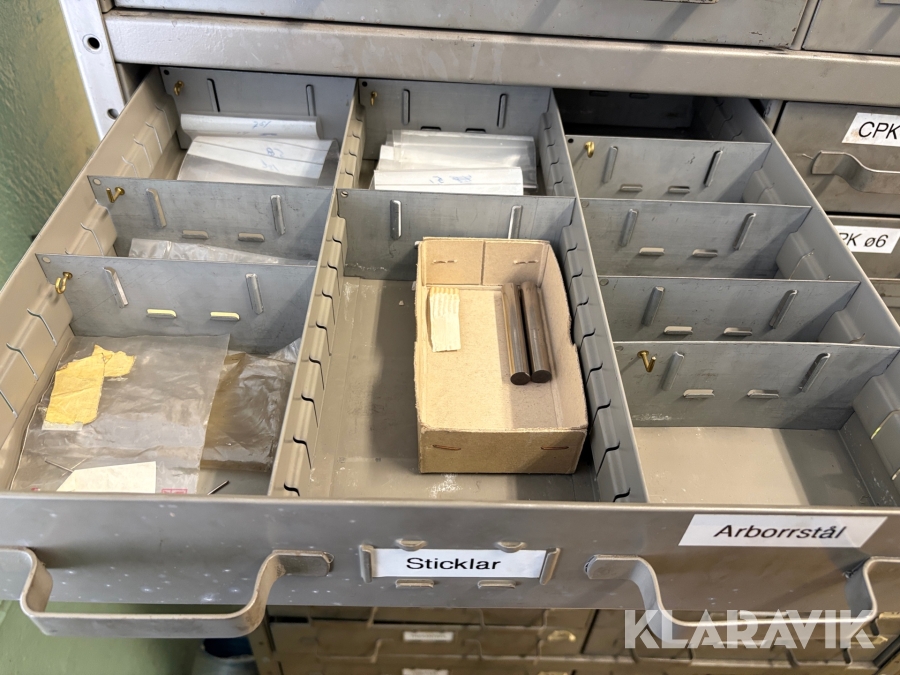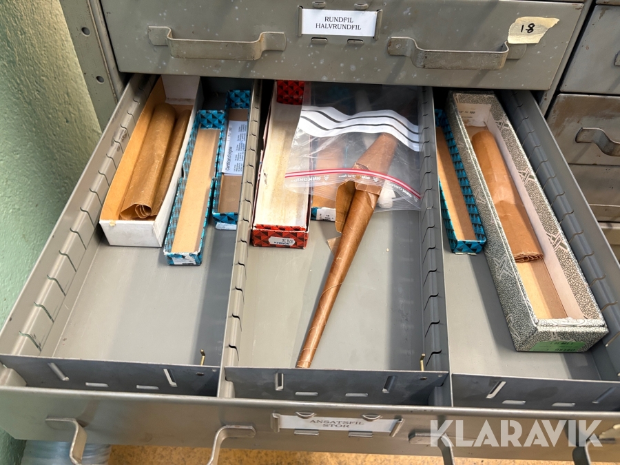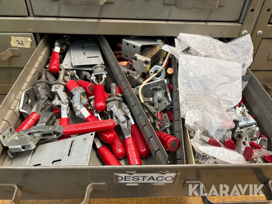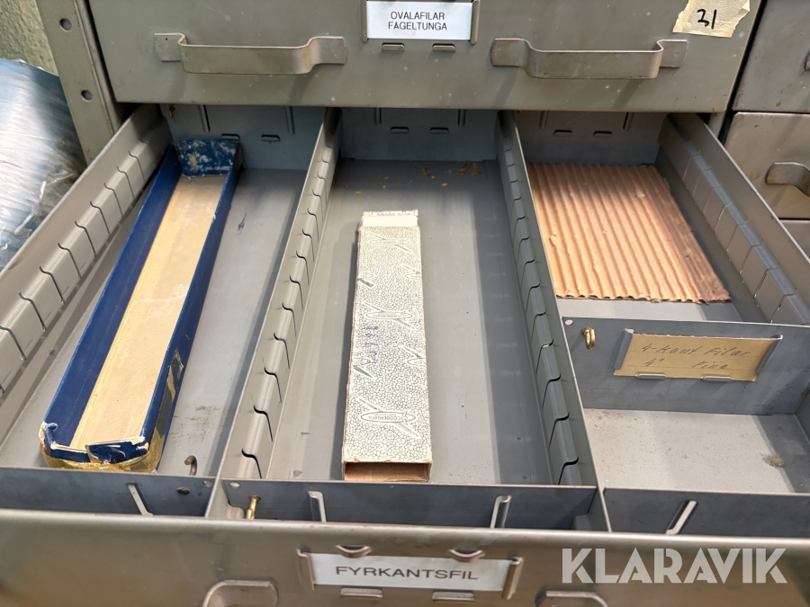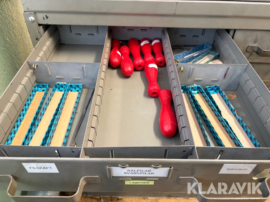 Plåtskåp med diverse utrustning för verktygsbearbetning