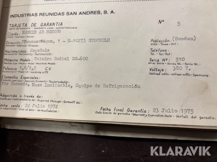 Boka frakt? Det finns ingen specifik information om frakt för just det här objektet, men om du skickar oss en förfrågan via vårt fraktformulär, så undersöker vi möjligheten. Paket, EU-pall eller större maskin? Klaravik har fraktavtal med Schenker och i de fall vi kan hjälpa till med frakt gäller det objekt som ryms i paket eller inom en EU-pall (upp till 120*80 cm och 990 kg). Det går att beställa frakt inom Sverige, dock inte till utlandet. Vid frakt på större maskiner rekommenderar vi gärna transportföretag som du kan kontakta.