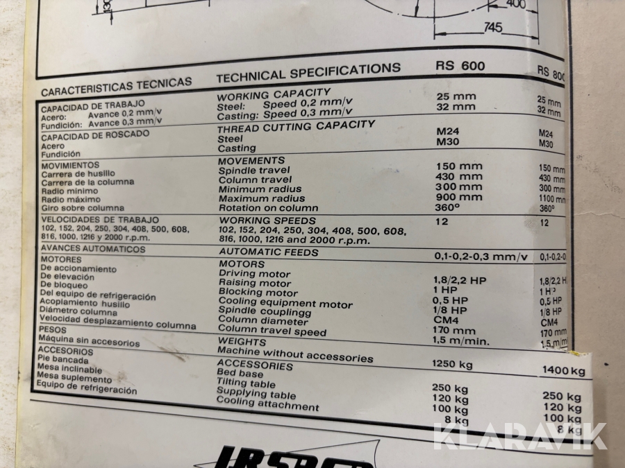 Radialborr Irsasa RS-600