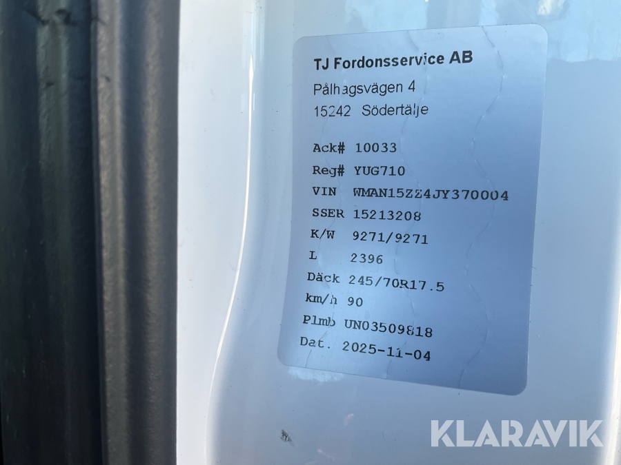 Lastbil MAN TGL 12.220 4X2 Bl 2017 med bakgavellyft