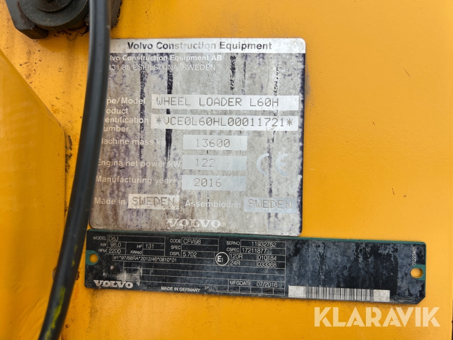 Hjullastare Volvo L60H longbom