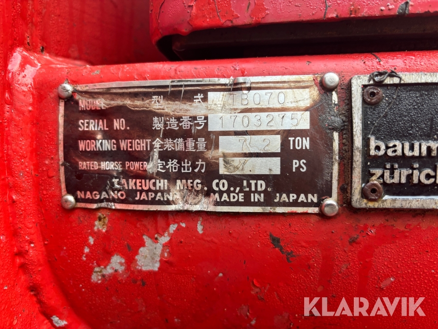 Grävmaskin Takeuchi Take-job TB070 med tiltrotator och redskap