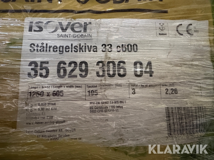 Isolering Isover Stålregelskiva 33 c600