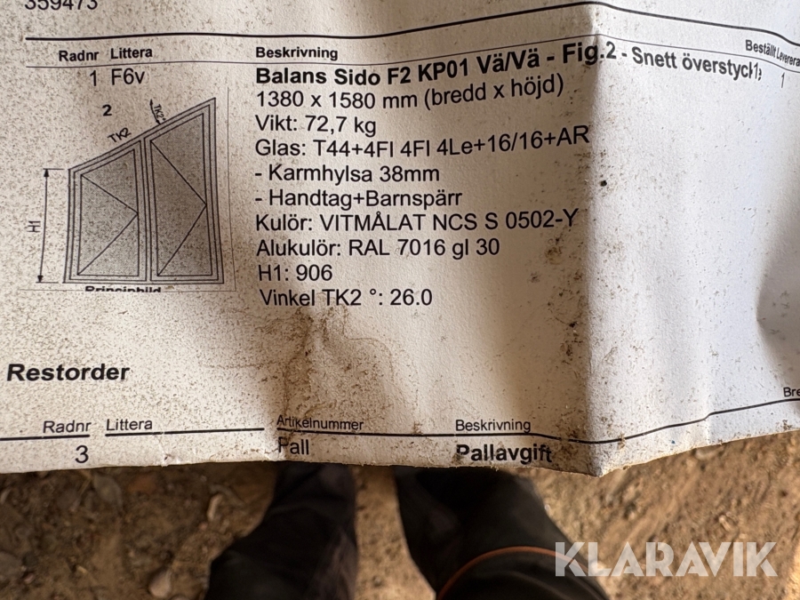 Du som köpare är skyldig att kontrollera objektet vid hämtning. Skiljer sig något avsevärt jämfört med informationen på klaravik.se? Kontakta då Klaravik innan du tar objektet från platsen. Läs fullständiga köpvillkor.