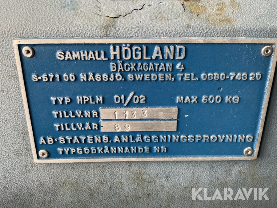 Luftdriven lyft Samhall Högland HPLM 01/02