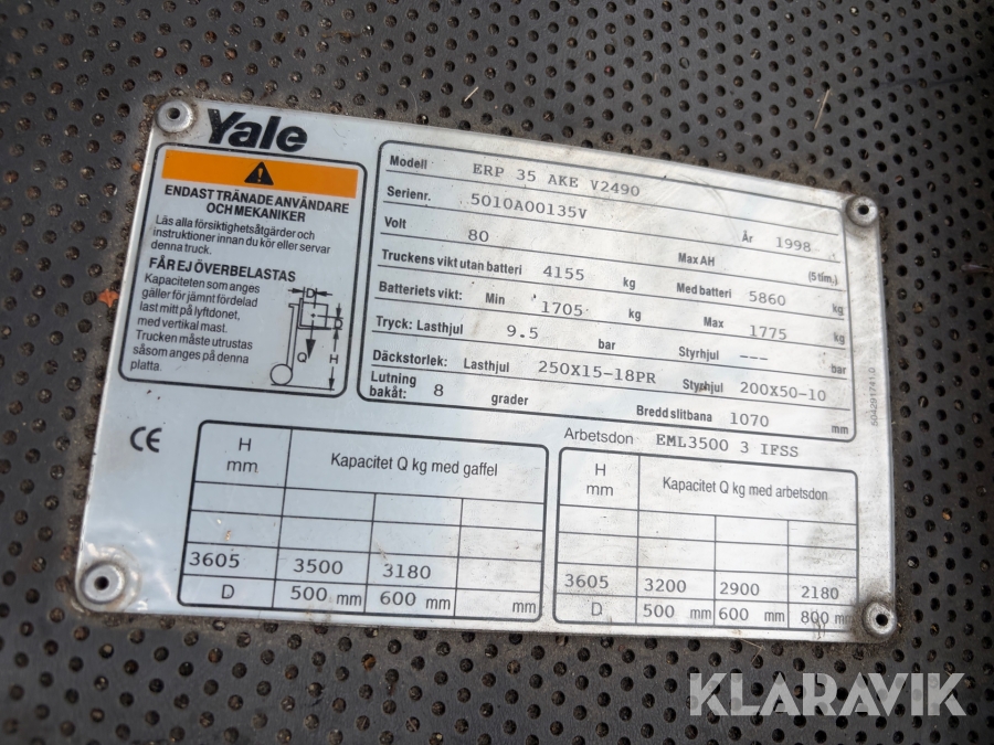 Motviktstruck Yale ERP 35 AKE V2490 3,5 ton