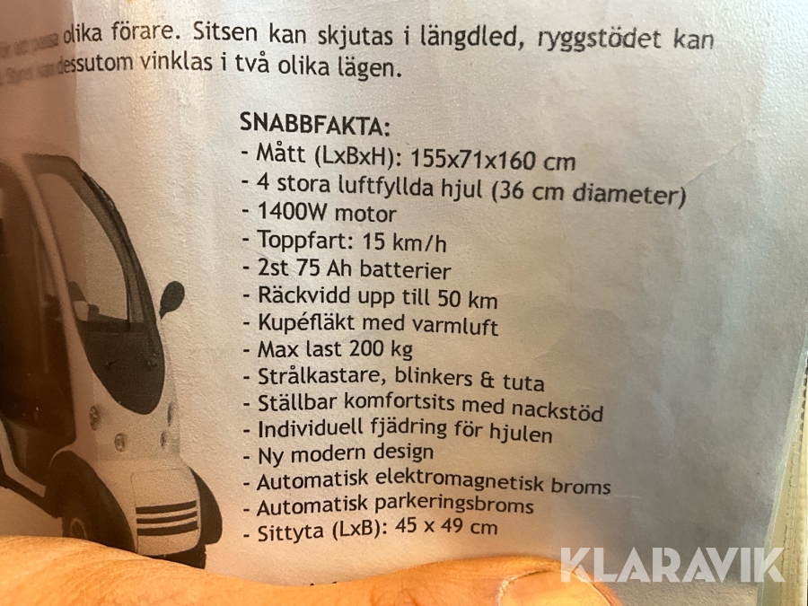 Du som köpare är skyldig att kontrollera objektet vid hämtning. Skiljer sig något avsevärt jämfört med informationen på klaravik.se? Kontakta då Klaravik innan du tar objektet från platsen. Läs fullständiga köpvillkor.