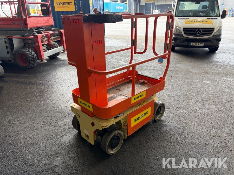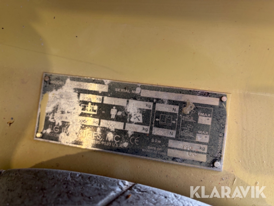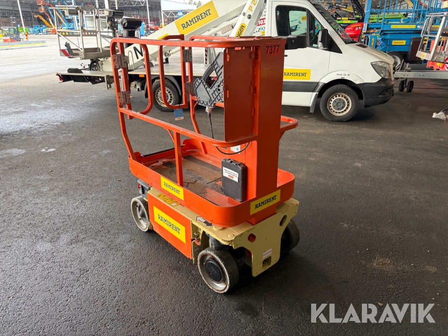 JLG 1230ES är en kompakt och eldriven pelarlift som är idealisk för arbete på höjd i trånga inomhusmiljöer. Med en arbetshöjd på upp till 5,66 meter och en plattformskapacitet på 230 kg erbjuder den en stabil och säker arbetsplattform för en person med verktyg. Dess smala bredd på endast 0,76 meter och låga vikt på cirka 790 kg gör den lätt att manövrera genom standarddörrar och i hissar, vilket underlättar arbete i begränsade utrymmen. Med en svängradie på endast 13 cm och en körhastighet på upp till 4,8 km/h i nedfällt läge är den mycket lättmanövrerad. Säkerhetsfunktioner som lutningssensor, potthålsskydd och varningslarm är standard, vilket gör JLG 1230ES till ett pålitligt val för underhålls- och installationsarbeten inomhus.