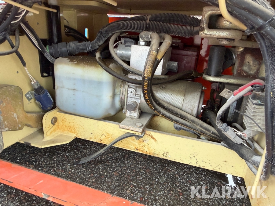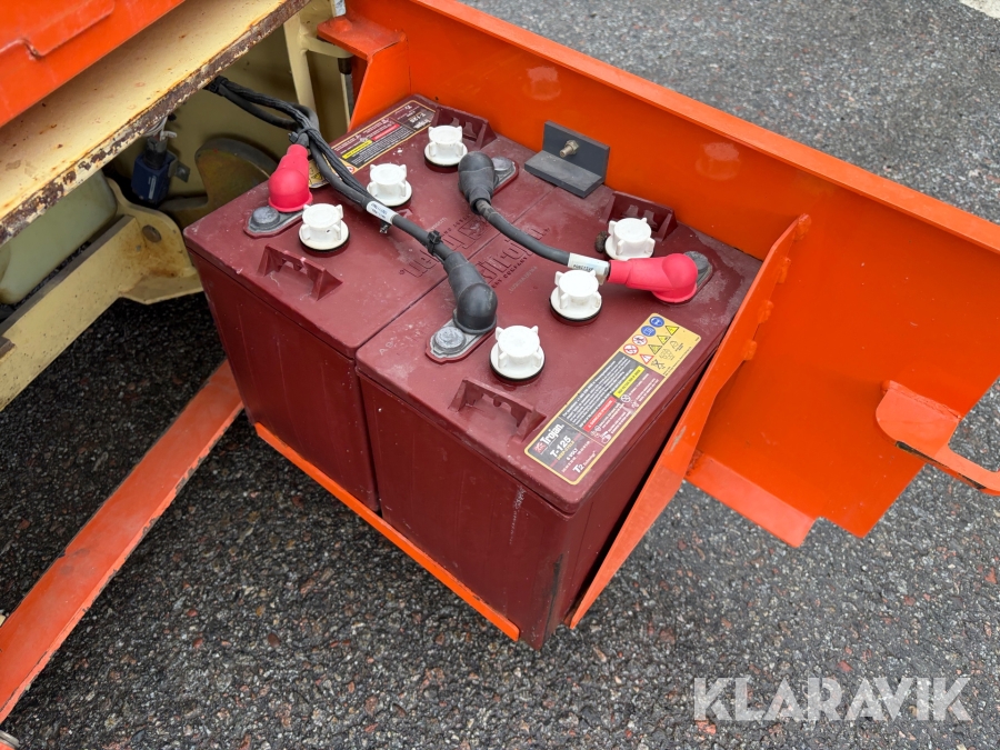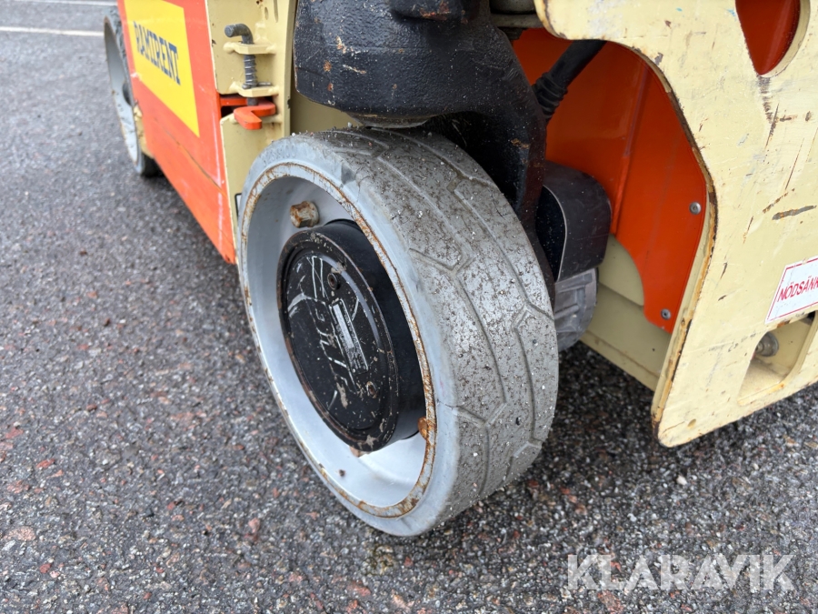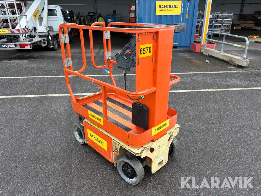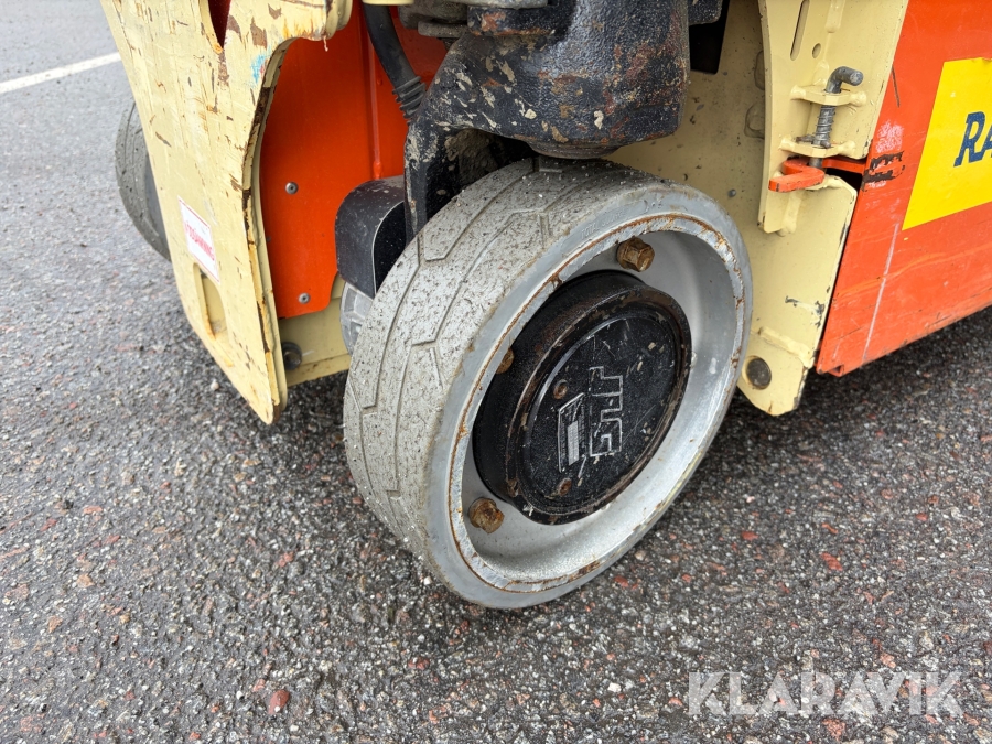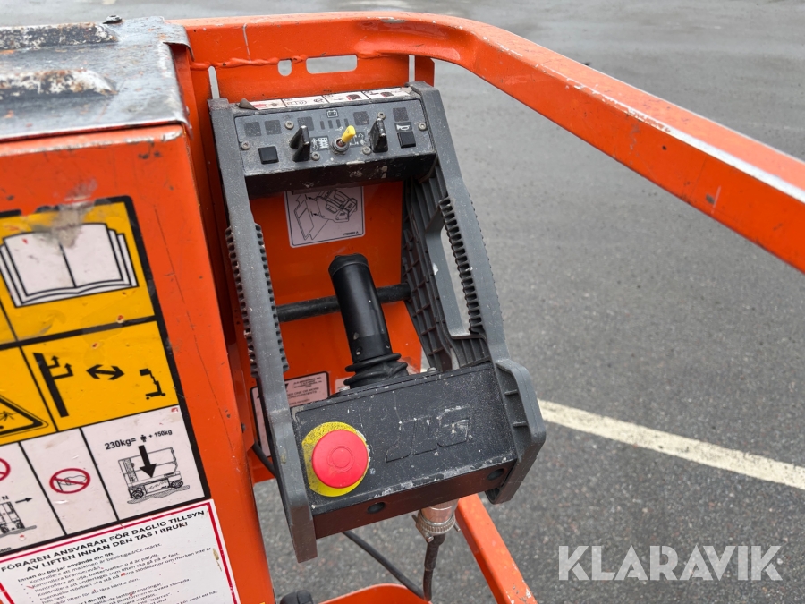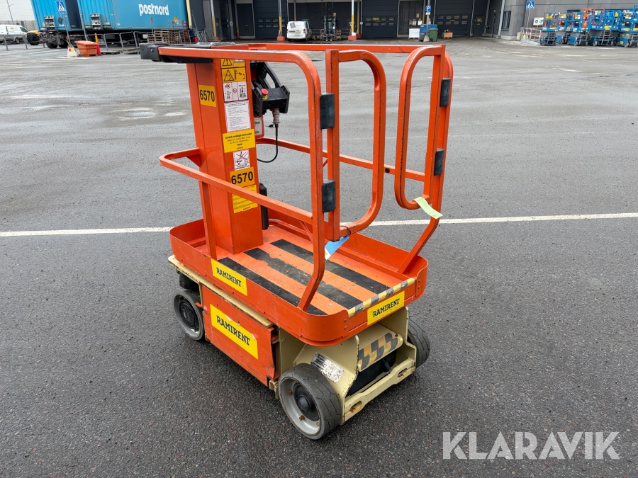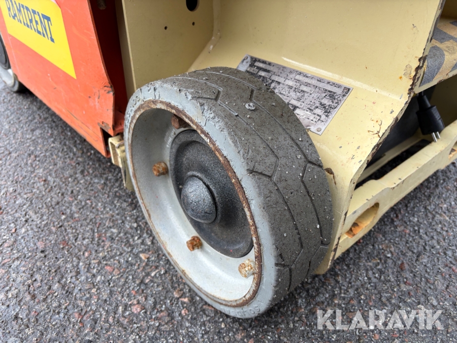 JLG 1230ES är en kompakt och eldriven pelarlift som är idealisk för arbete på höjd i trånga inomhusmiljöer. Med en arbetshöjd på upp till 5,66 meter och en plattformskapacitet på 230 kg erbjuder den en stabil och säker arbetsplattform för en person med verktyg. Dess smala bredd på endast 0,76 meter och låga vikt på cirka 790 kg gör den lätt att manövrera genom standarddörrar och i hissar, vilket underlättar arbete i begränsade utrymmen. Med en svängradie på endast 13 cm och en körhastighet på upp till 4,8 km/h i nedfällt läge är den mycket lättmanövrerad. Säkerhetsfunktioner som lutningssensor, potthålsskydd och varningslarm är standard, vilket gör JLG 1230ES till ett pålitligt val för underhålls- och installationsarbeten inomhus.