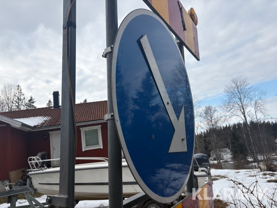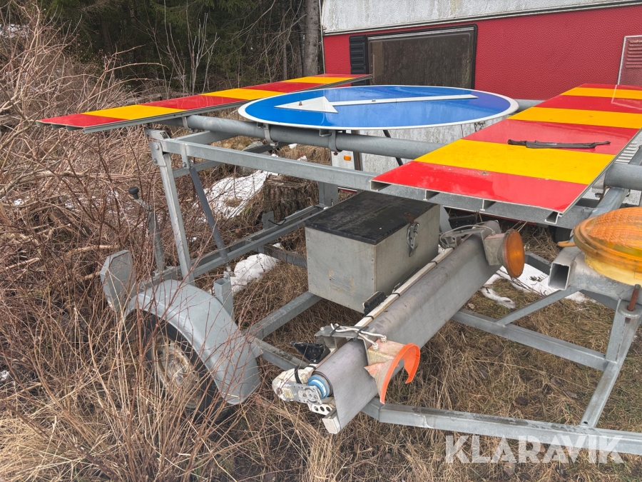 Släp med vägarbetesskylt