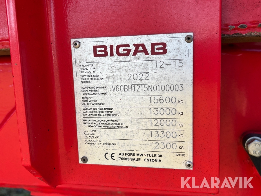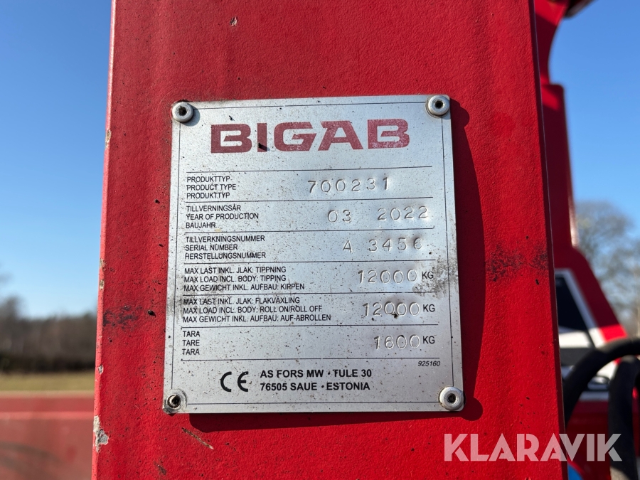 Lastväxlarvagn Bigab 12-15 med flak
