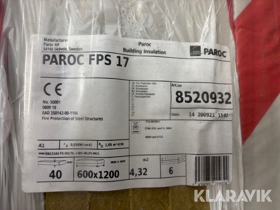 Isolering Paroc FPS 17 40mm