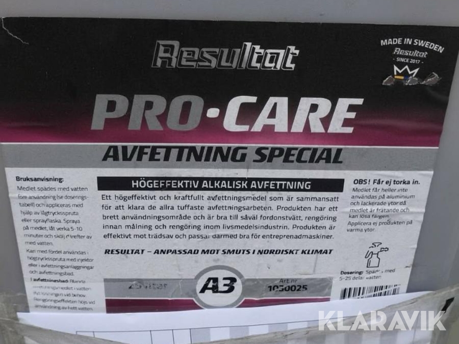 Alkalisk avfettning & prickfri special Resultat 2st 25L dunk