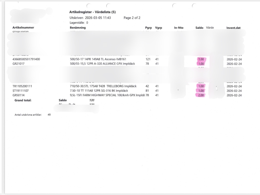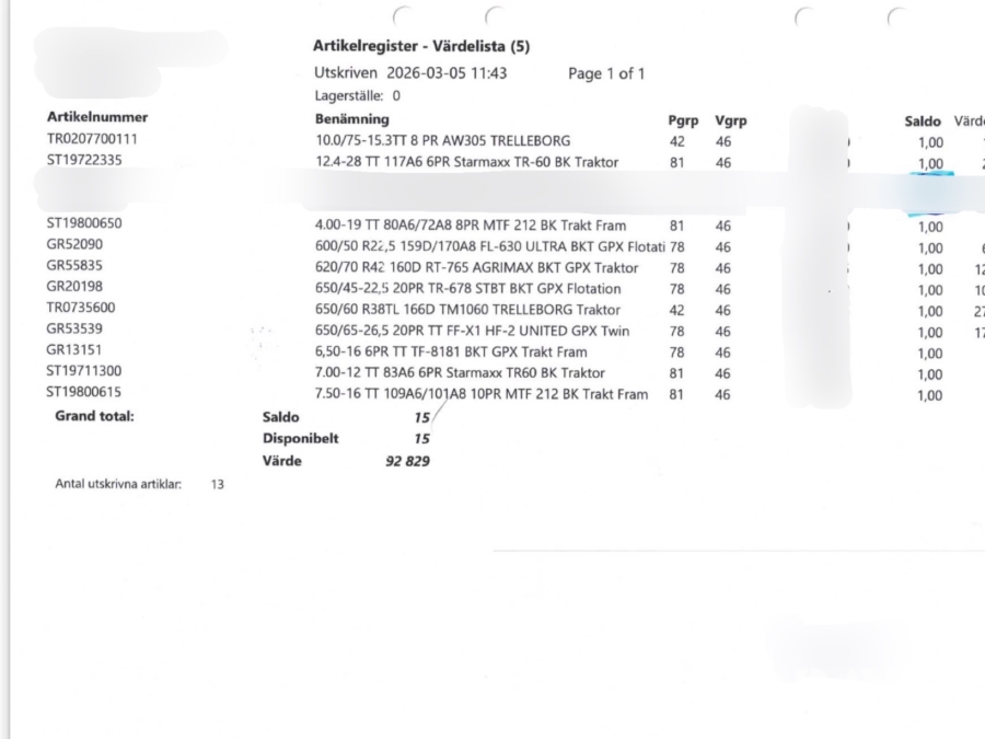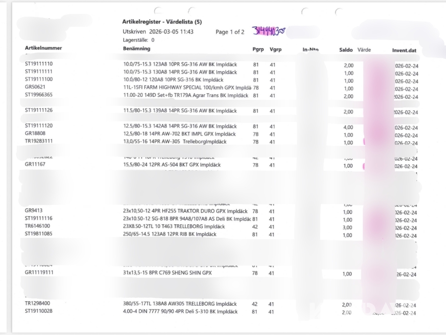 Däcklager lantbruksdäck/entreprenaddäck