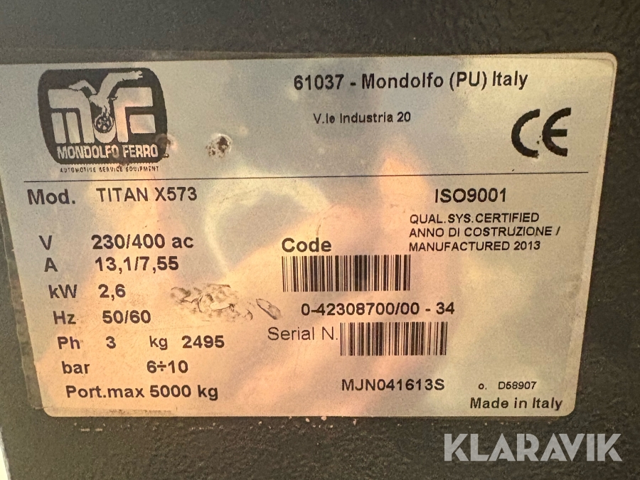 Fordonslyft Mondolfo Ferro Titan X573