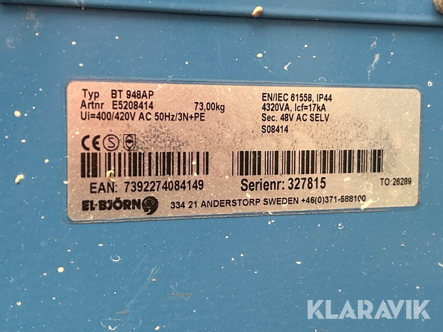Belysningstransformator El-Björn BT 948 AP