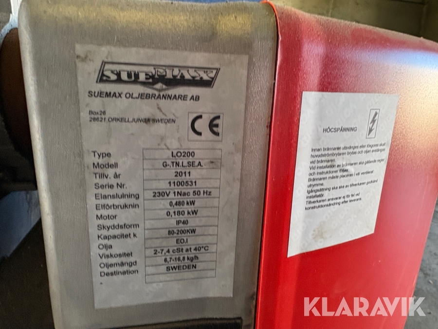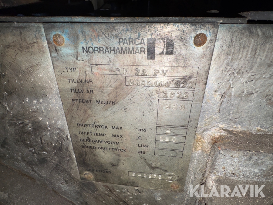 Oljepanna Parca Norrhammar PN 72 PV med oljebrännare SueMax
