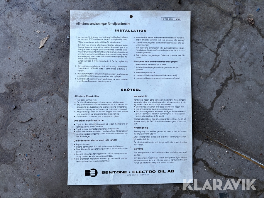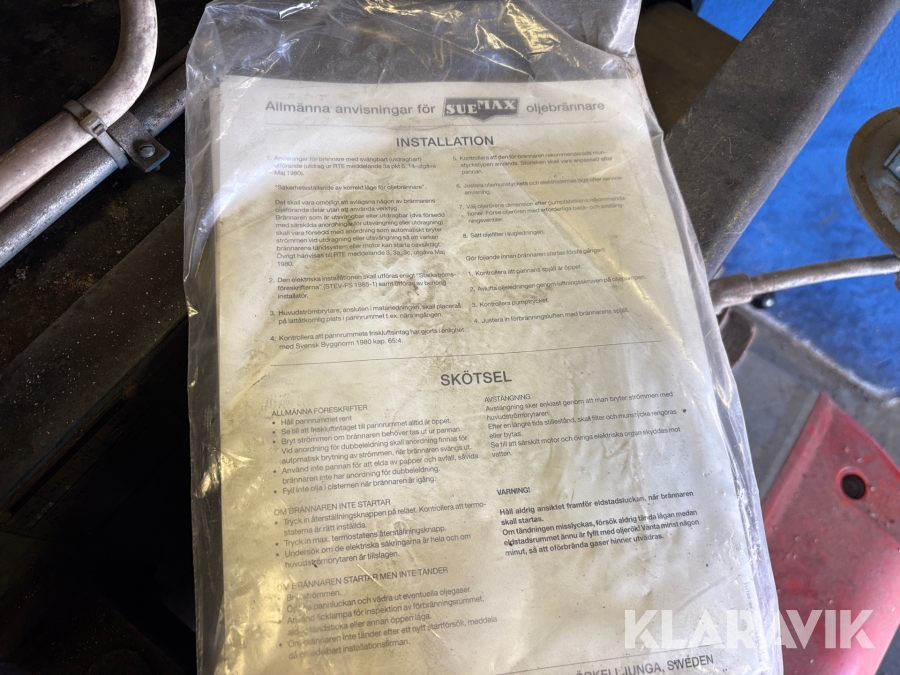 Boka frakt? Det finns ingen specifik information om frakt för just det här objektet, men om du skickar oss en förfrågan via vårt fraktformulär, så undersöker vi möjligheten. Paket, EU-pall eller större maskin? Klaravik har fraktavtal med Schenker och i de fall vi kan hjälpa till med frakt gäller det objekt som ryms i paket eller inom en EU-pall (upp till 120*80 cm och 990 kg). Det går att beställa frakt inom Sverige, dock inte till utlandet. Vid frakt på större maskiner rekommenderar vi gärna transportföretag som du kan kontakta.