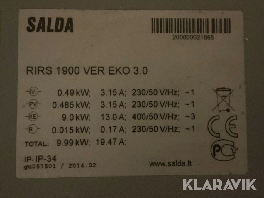 Ventilationaggregat Salda RIRS 1900VER ECO 3.0