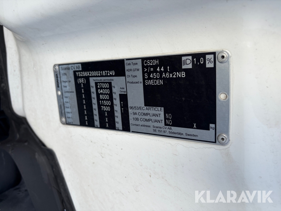 ADR dragbil Scania S450A 6X2 NB