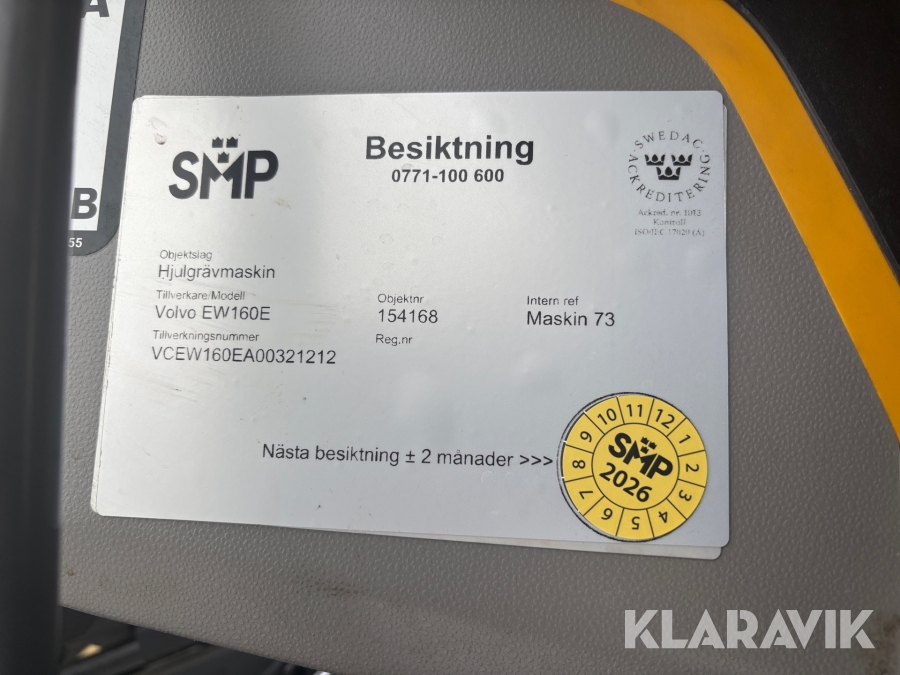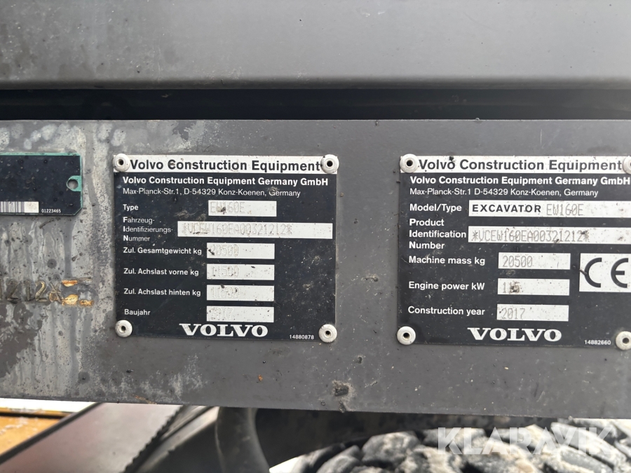 Grävmaskin Volvo EW160E med skopa