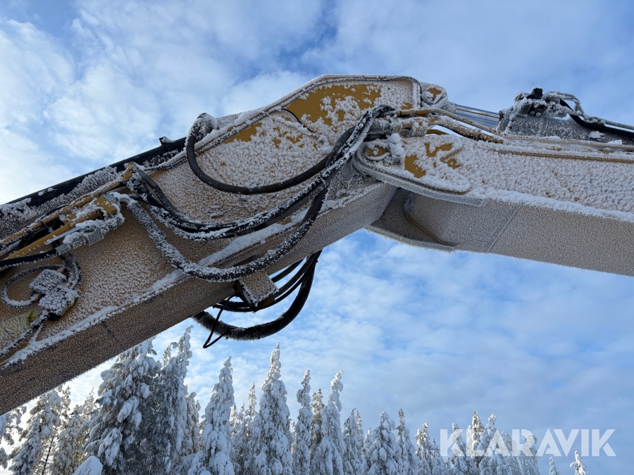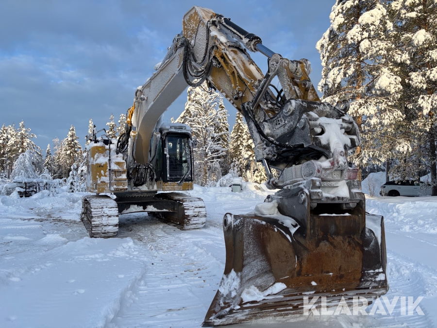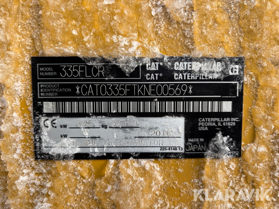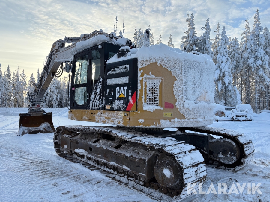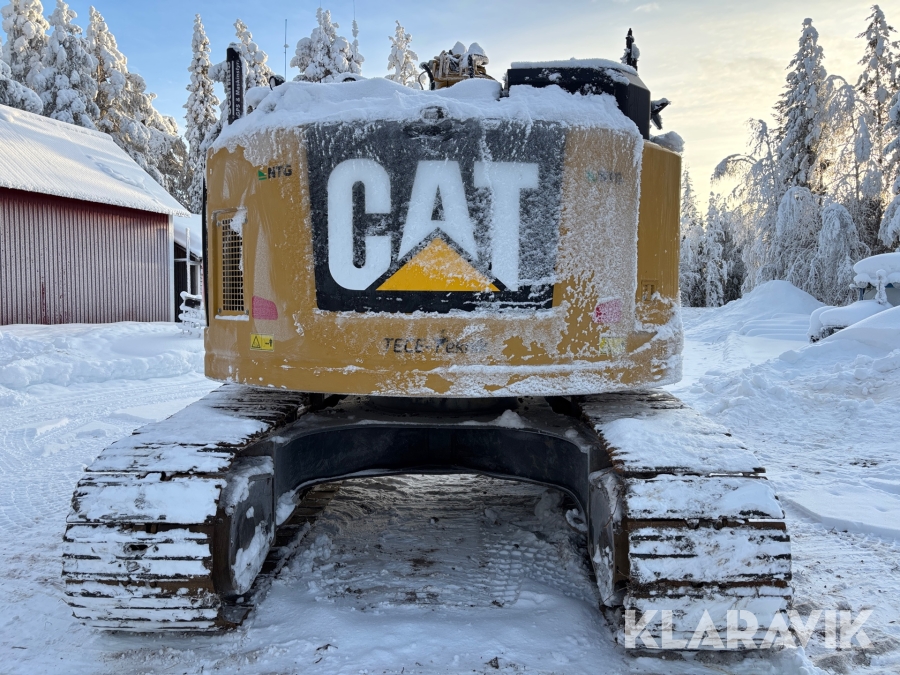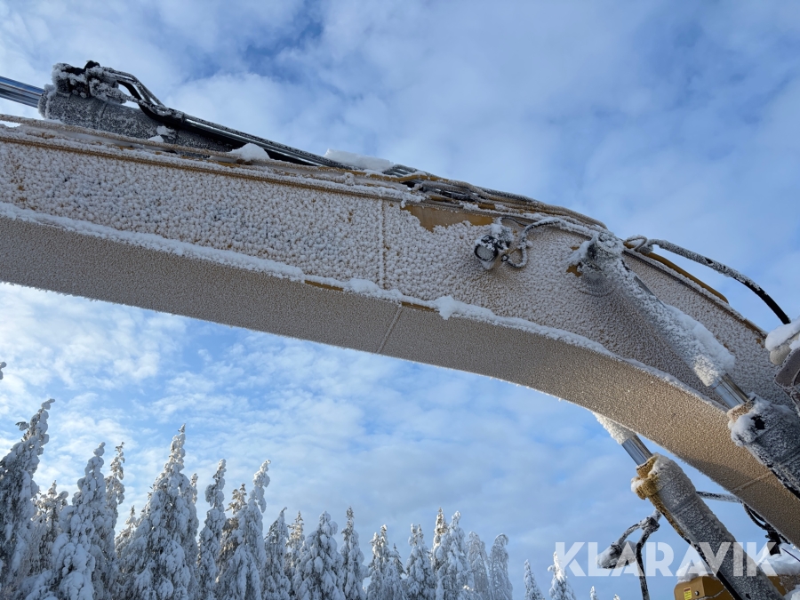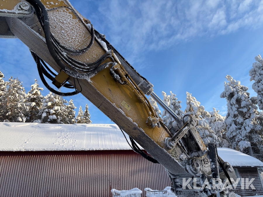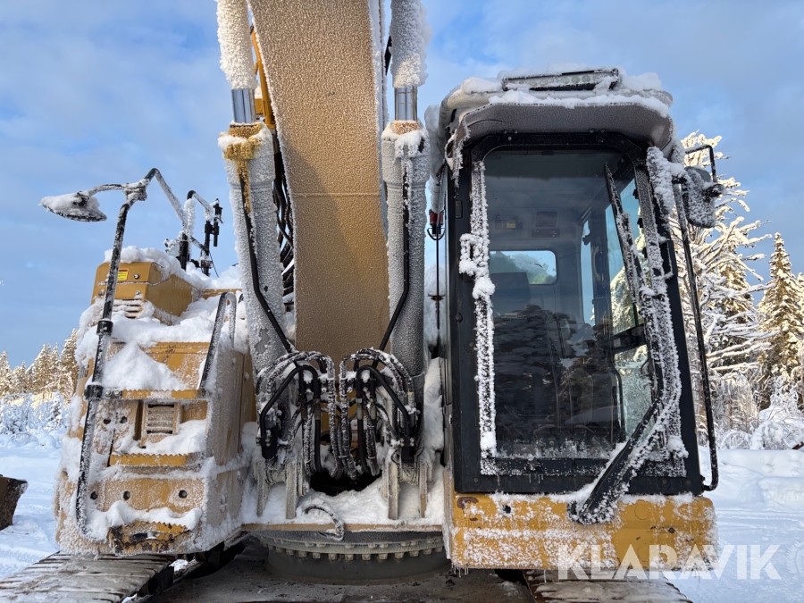 Grävmaskin CAT 335F med flera redskap.