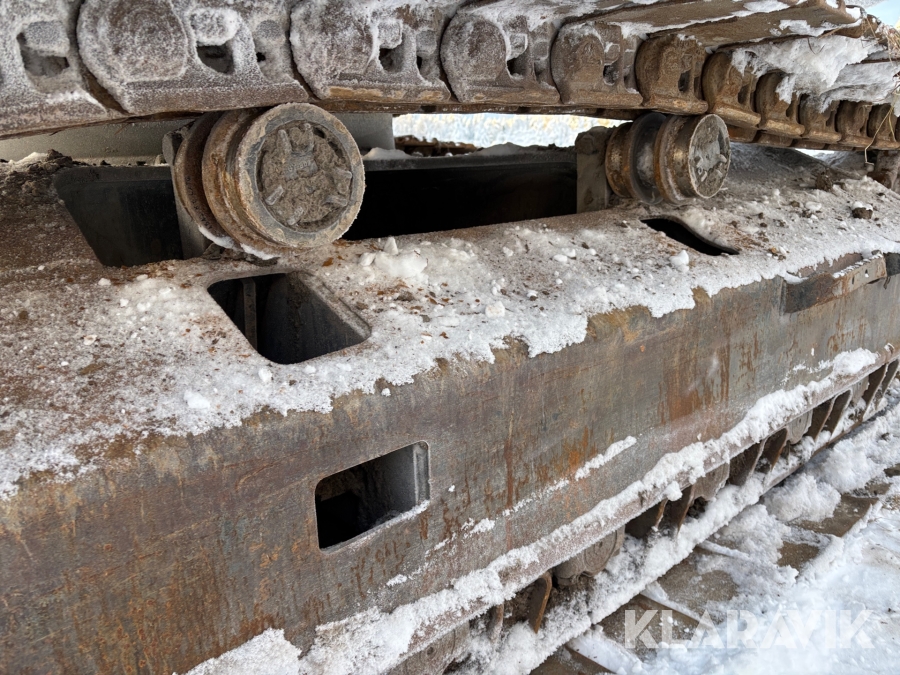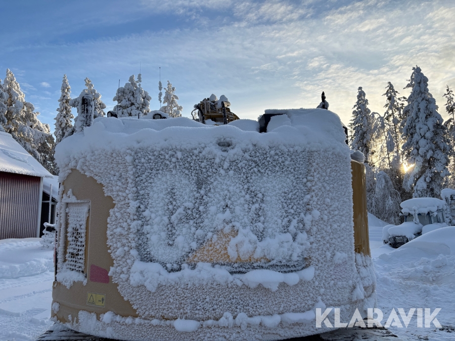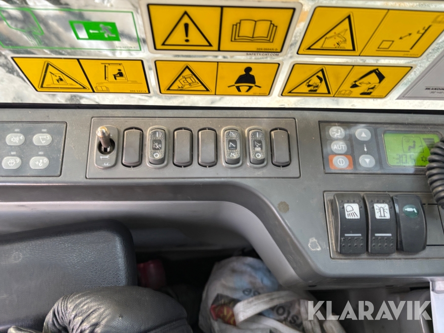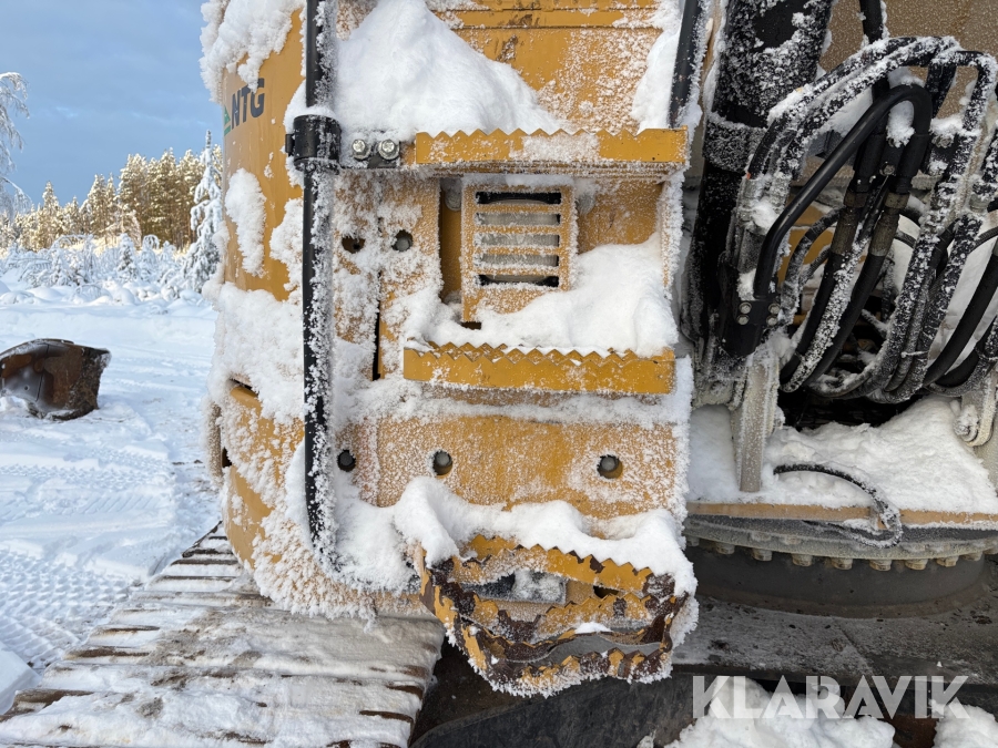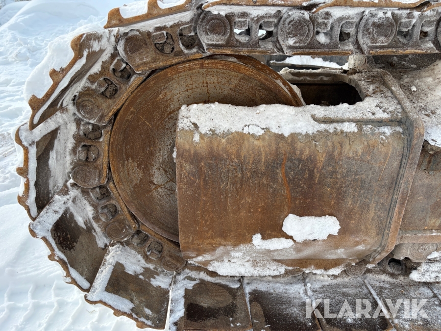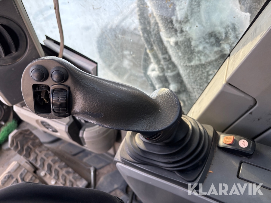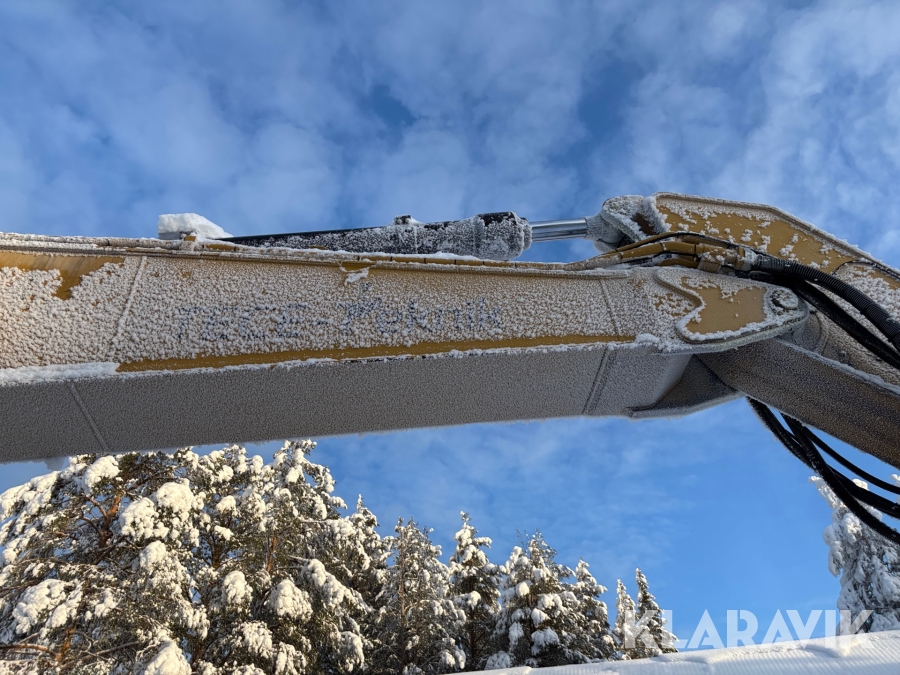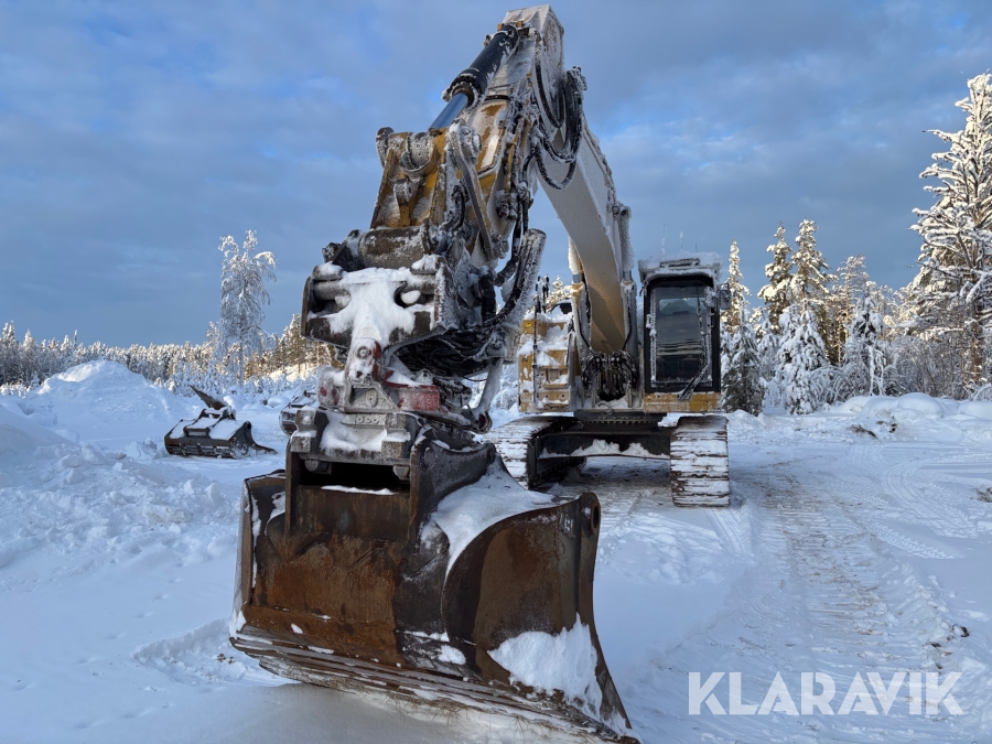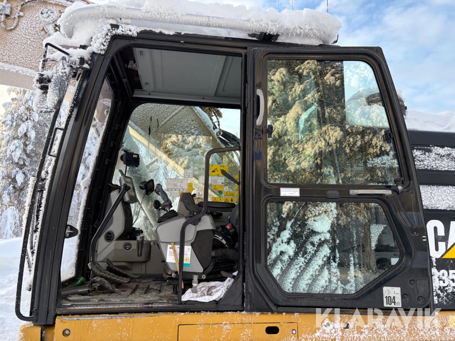 Grävmaskin CAT 335F med flera redskap.