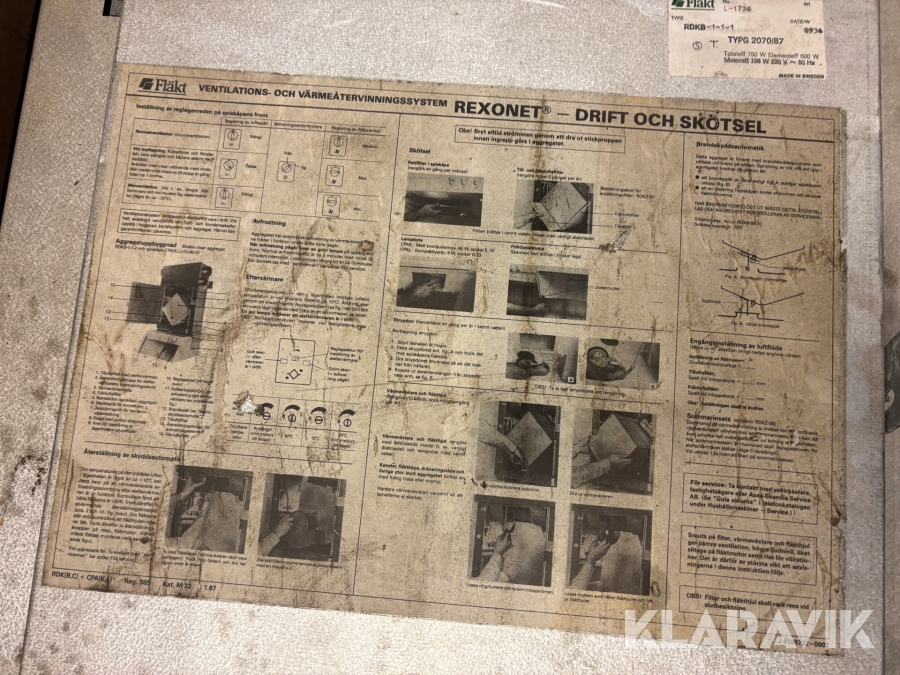 Ventilation / Värmeåtervinningssytem Svensk Fläktfabriken RDKB1-1-1 750w