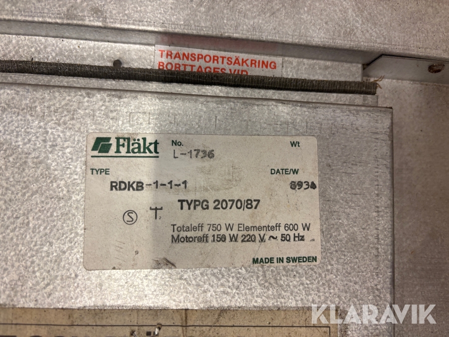 Boka frakt? Det finns ingen specifik information om frakt för just det här objektet, men om du skickar oss en förfrågan via vårt fraktformulär, så undersöker vi möjligheten. Paket, EU-pall eller större maskin? Klaravik har fraktavtal med Schenker och i de fall vi kan hjälpa till med frakt gäller det objekt som ryms i paket eller inom en EU-pall (upp till 120*80 cm och 990 kg). Det går att beställa frakt inom Sverige, dock inte till utlandet. Vid frakt på större maskiner rekommenderar vi gärna transportföretag som du kan kontakta.