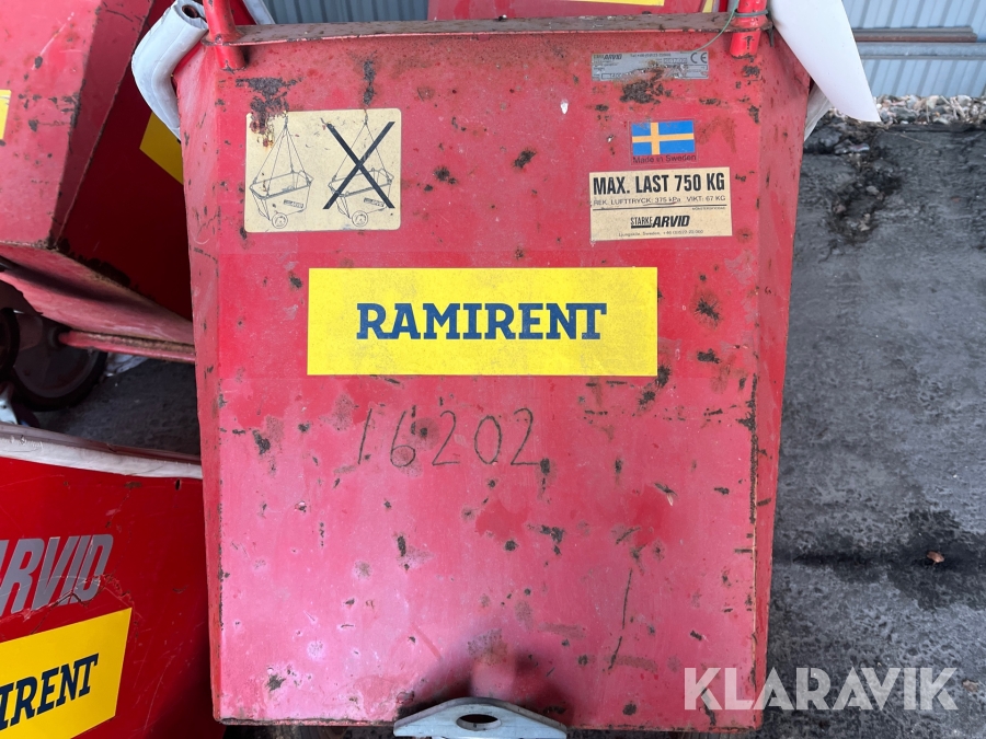 Pga platsbrist är det viktigt att du som köpare hämtar inom 12 dagar från auktionsavslut. Vid frågor om frakt kontakta trade@ramirent.se.