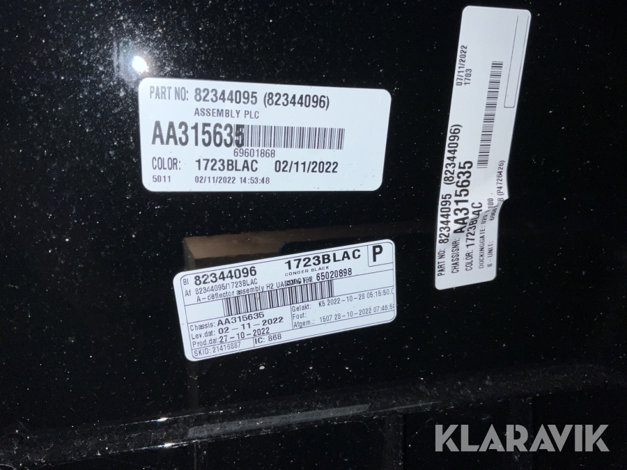 • Serie/chassinummer framgår