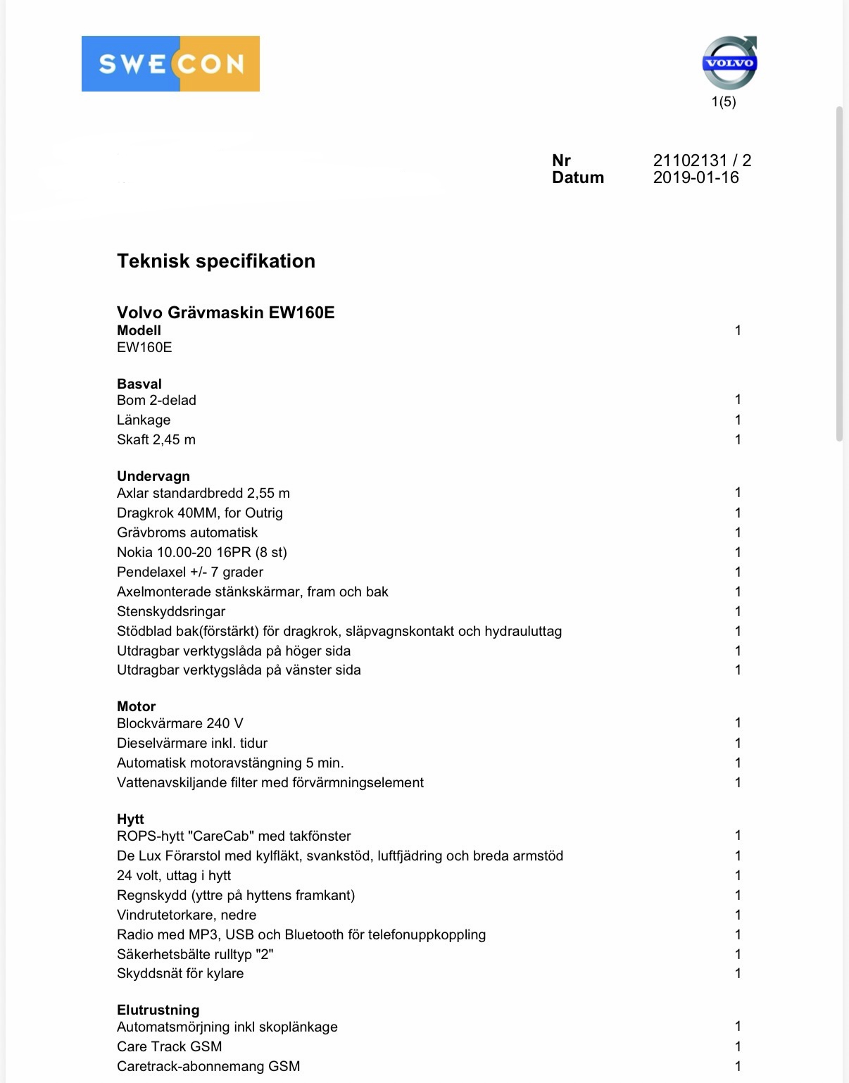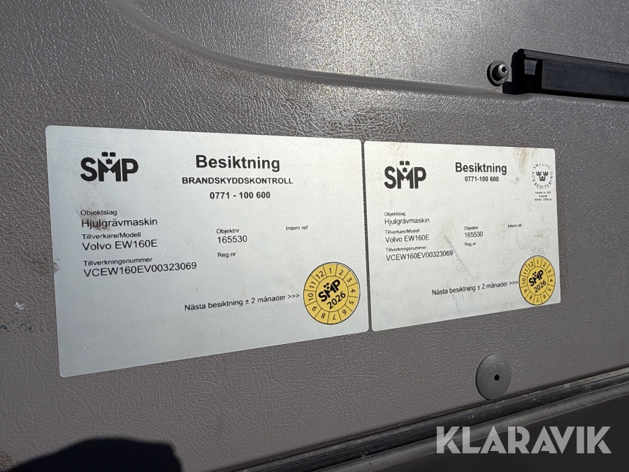 Hjulgrävare Volvo EW160E med kärra och 9 redskap