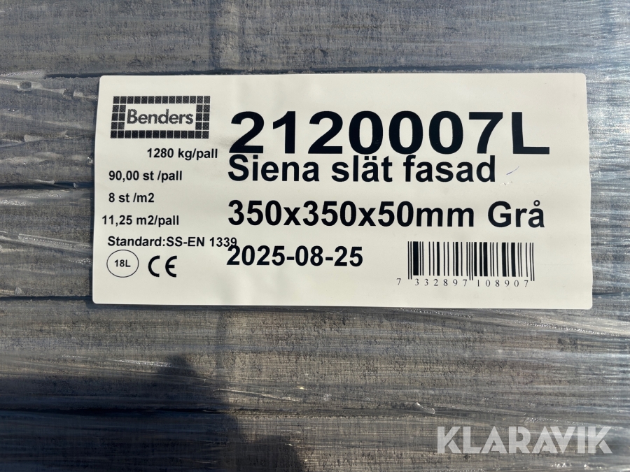 Platta Benders Siena slät fasad 350x350x50 mm Grå - 10 pall