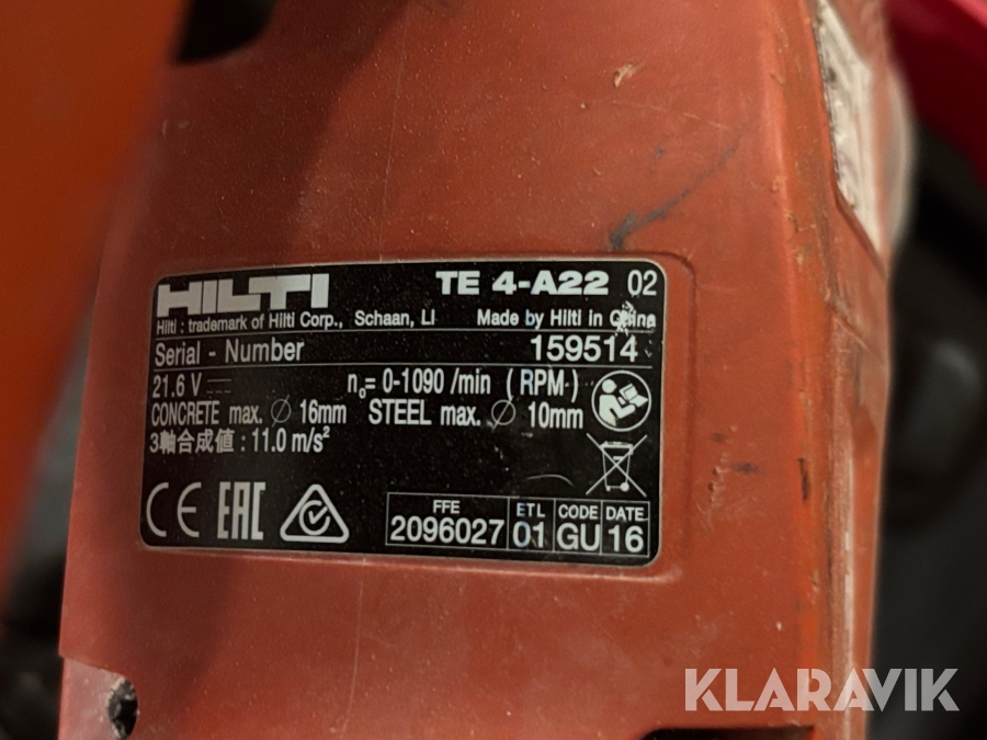 Borrhammare Hilti TE 4-A22 med dammsugare
