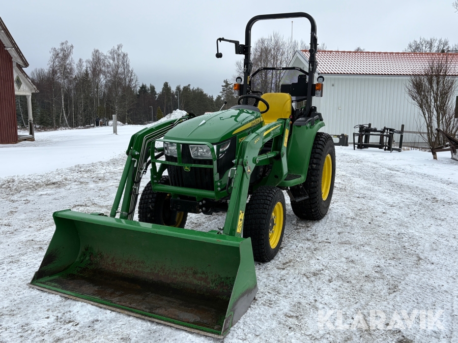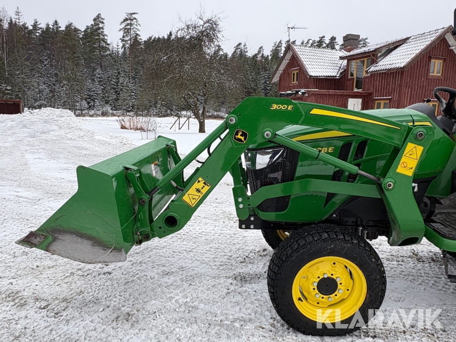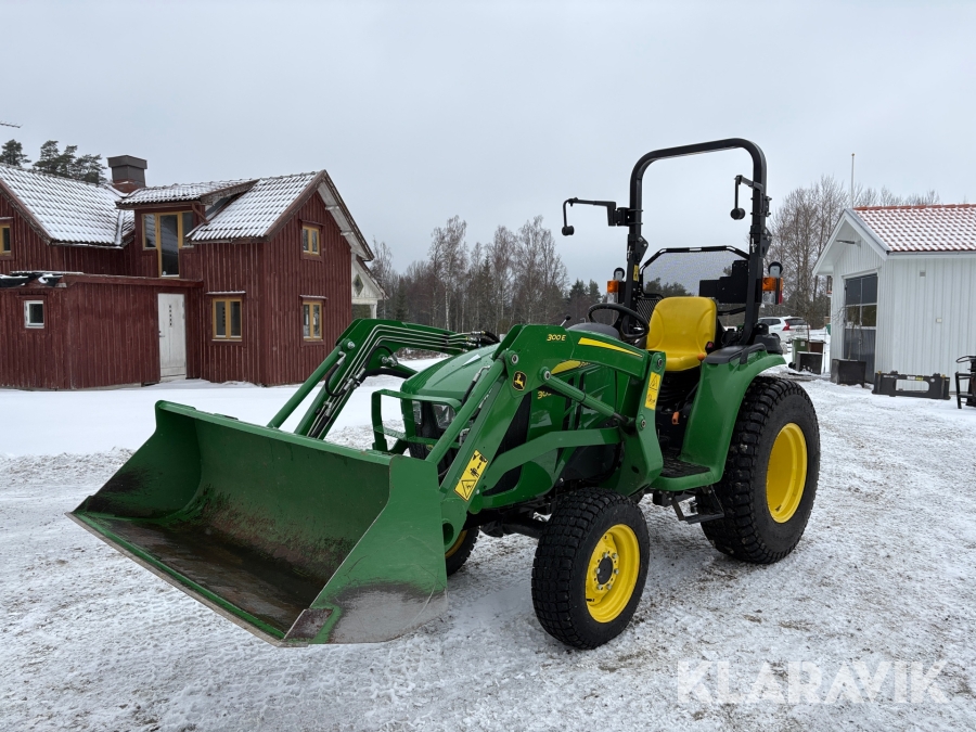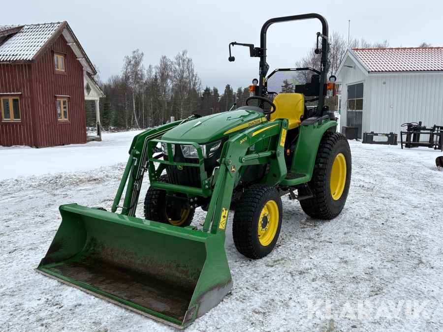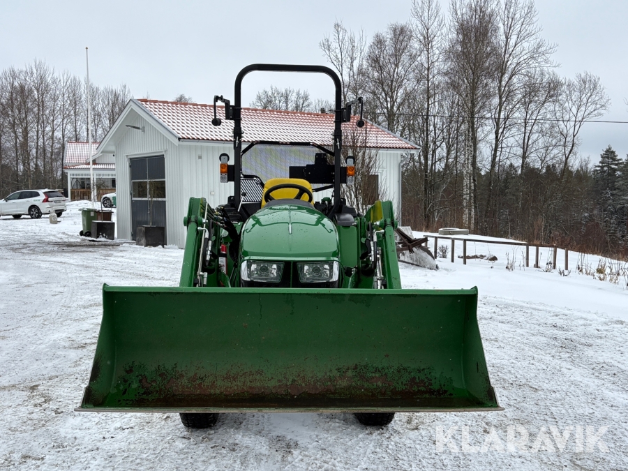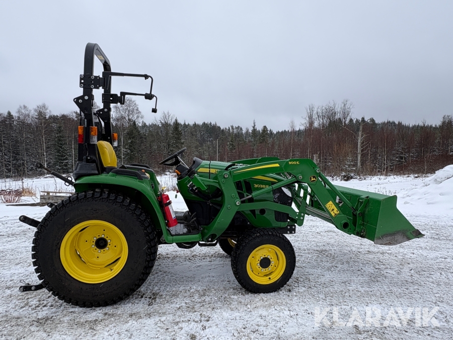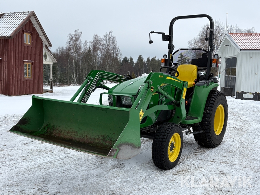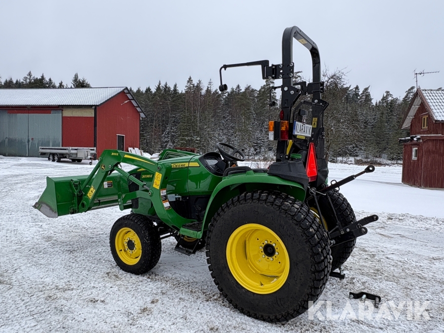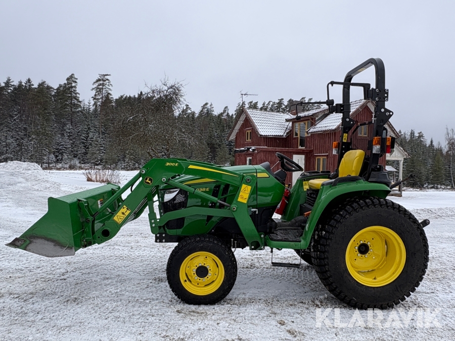 Traktor John Deere 3038E med frontlastare och redskap
