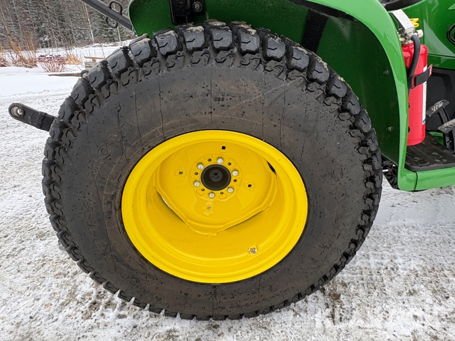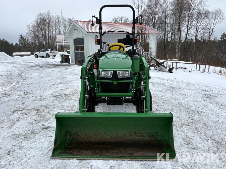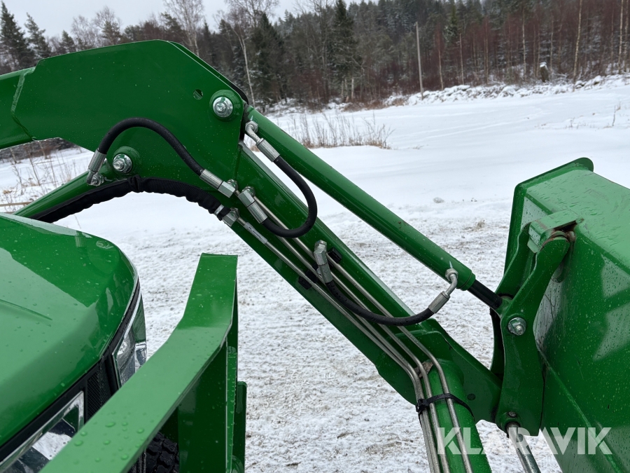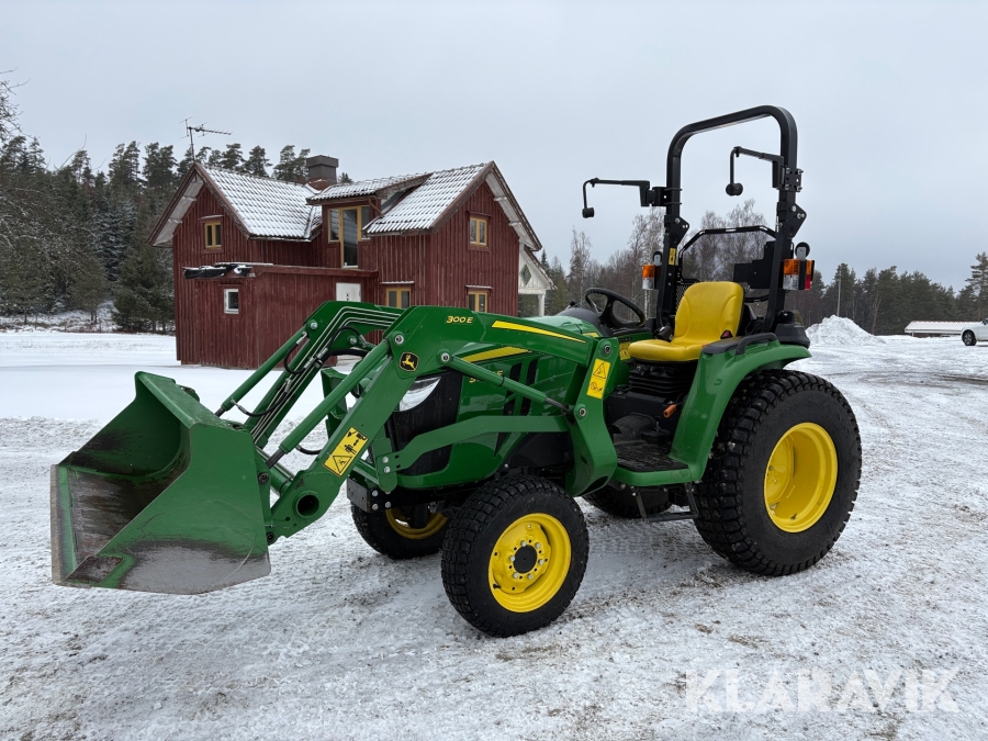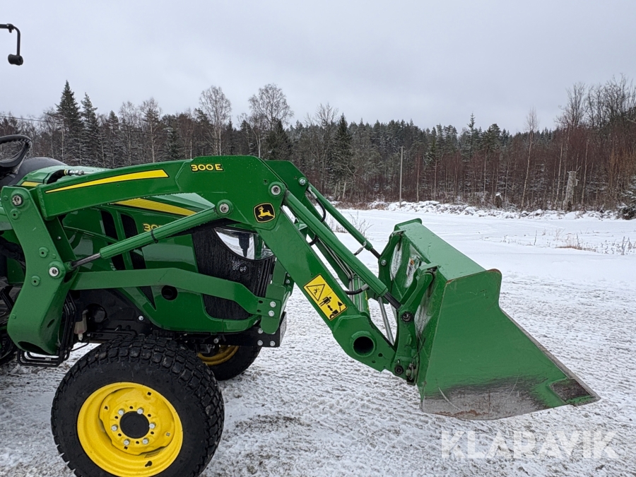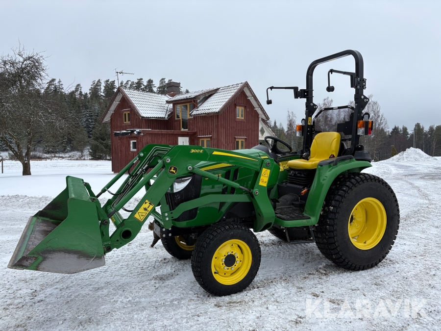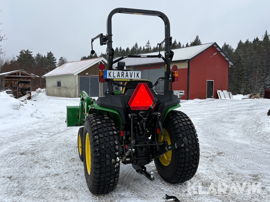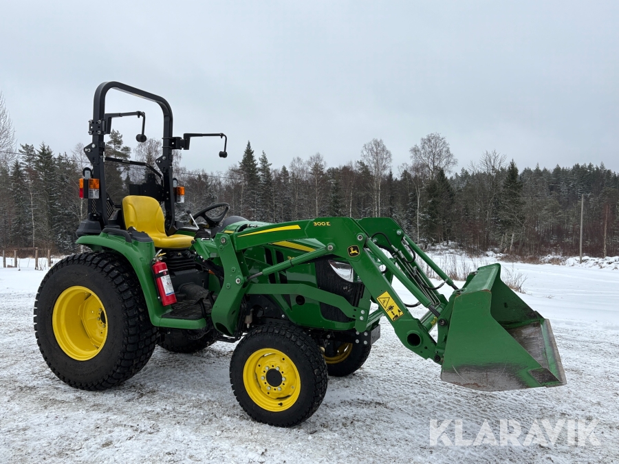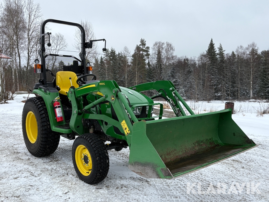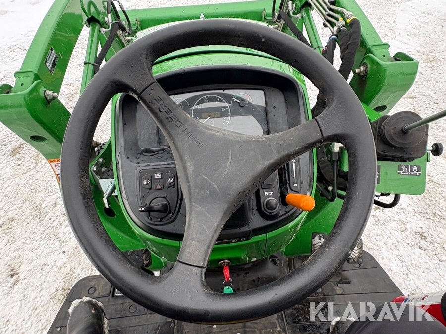 Traktor John Deere 3038E med frontlastare och redskap