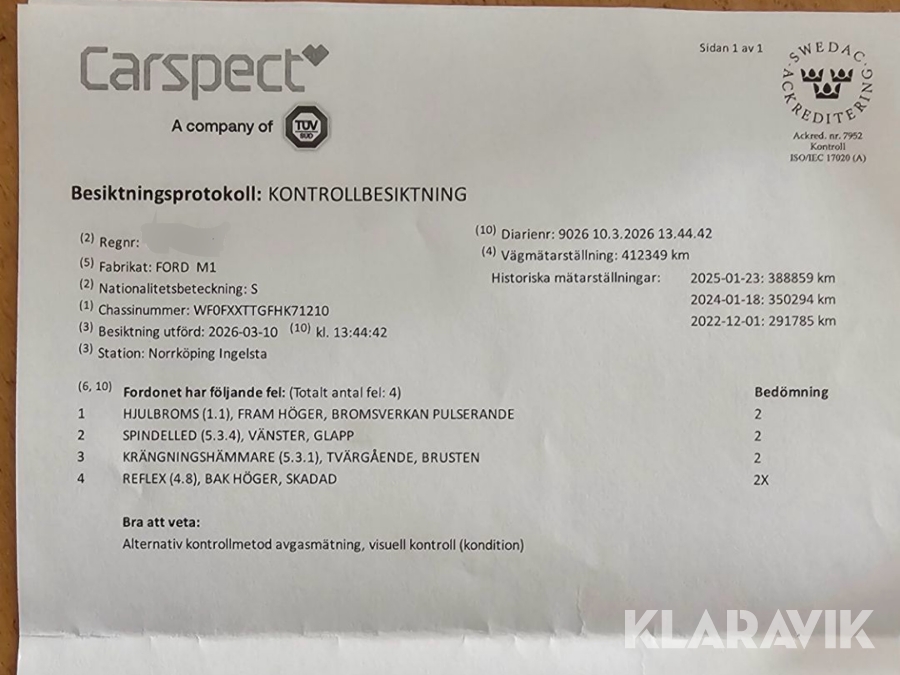 Du som köpare är skyldig att kontrollera objektet vid hämtning. Skiljer sig något avsevärt jämfört med informationen på klaravik.se? Kontakta då Klaravik innan du tar objektet från platsen. Läs fullständiga köpvillkor.