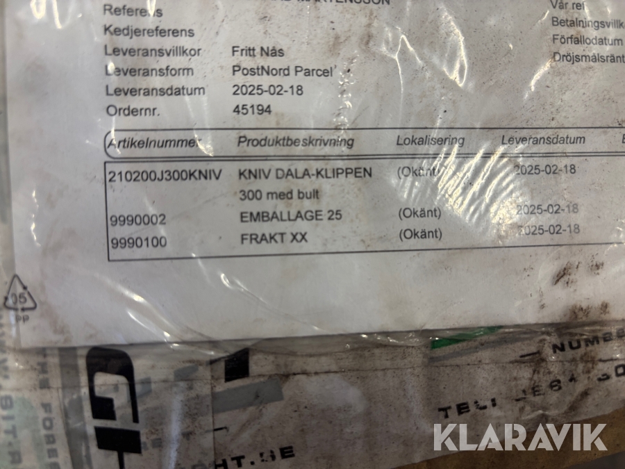 Boka frakt? Det finns ingen specifik information om frakt för just det här objektet, men om du skickar oss en förfrågan via vårt fraktformulär, så undersöker vi möjligheten. Paket, EU-pall eller större maskin? Klaravik har fraktavtal med Schenker och i de fall vi kan hjälpa till med frakt gäller det objekt som ryms i paket eller inom en EU-pall (upp till 120*80 cm och 990 kg). Det går att beställa frakt inom Sverige, dock inte till utlandet. Vid frakt på större maskiner rekommenderar vi gärna transportföretag som du kan kontakta.