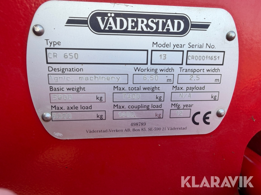 Tallriksredskap Väderstad Carrier 650