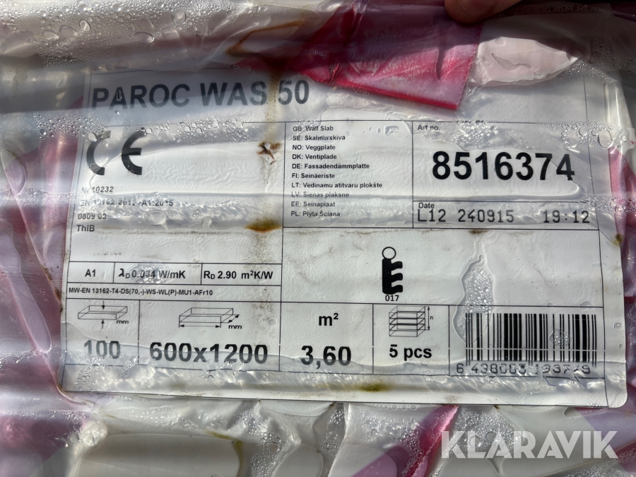 Isolering 17 pkt Paroc WES 50