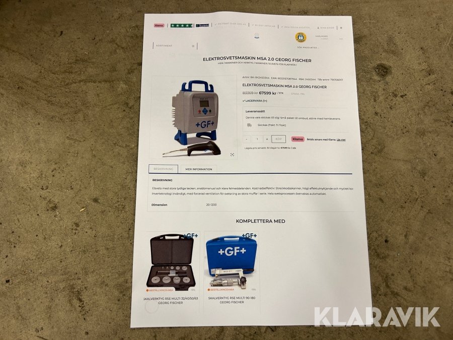 Boka frakt? Det finns ingen specifik information om frakt för just det här objektet, men om du skickar oss en förfrågan via vårt fraktformulär, så undersöker vi möjligheten. Paket, EU-pall eller större maskin? Klaravik har fraktavtal med Schenker och i de fall vi kan hjälpa till med frakt gäller det objekt som ryms i paket eller inom en EU-pall (upp till 120*80 cm och 990 kg). Det går att beställa frakt inom Sverige, dock inte till utlandet. Vid frakt på större maskiner rekommenderar vi gärna transportföretag som du kan kontakta.