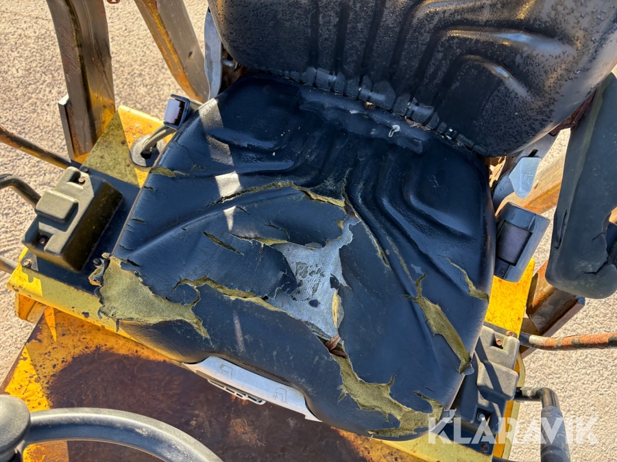 Sliten förarstol.