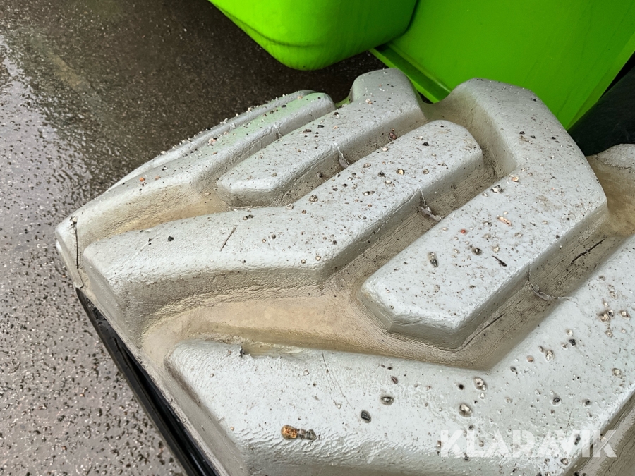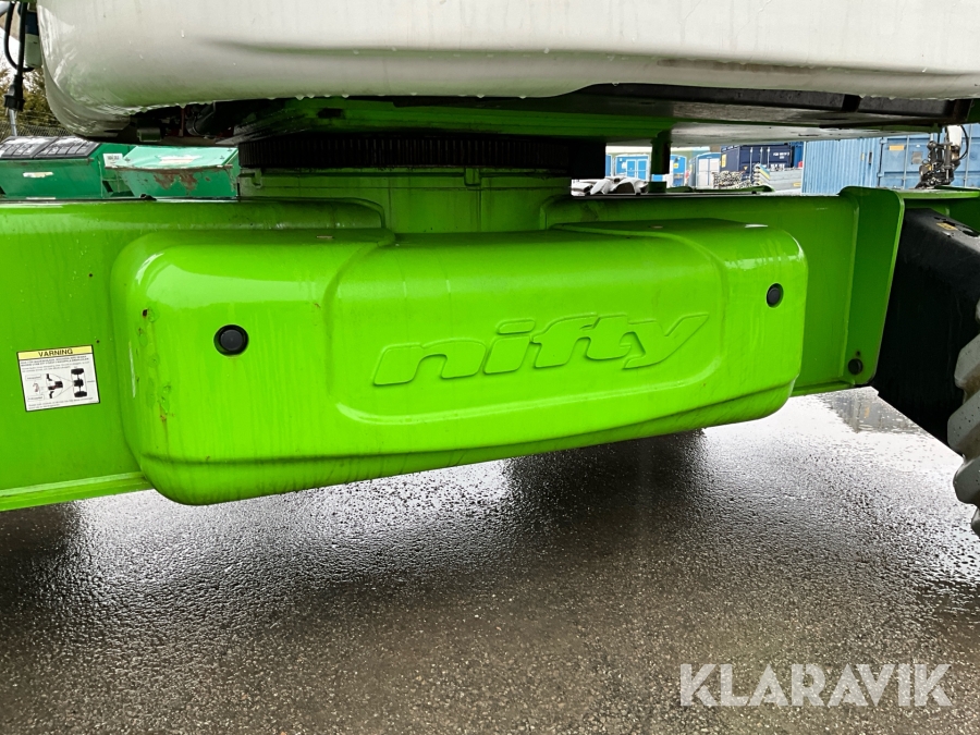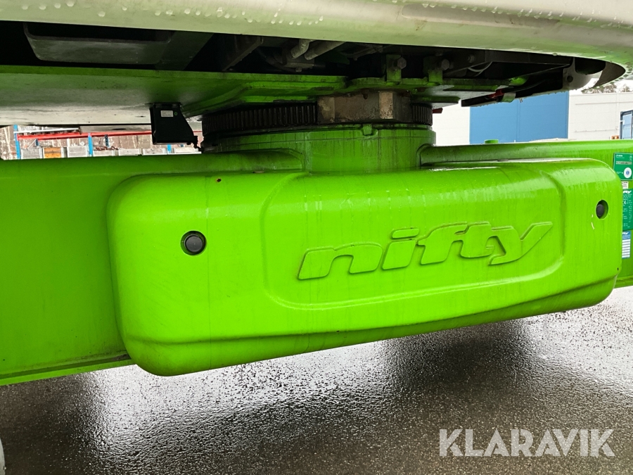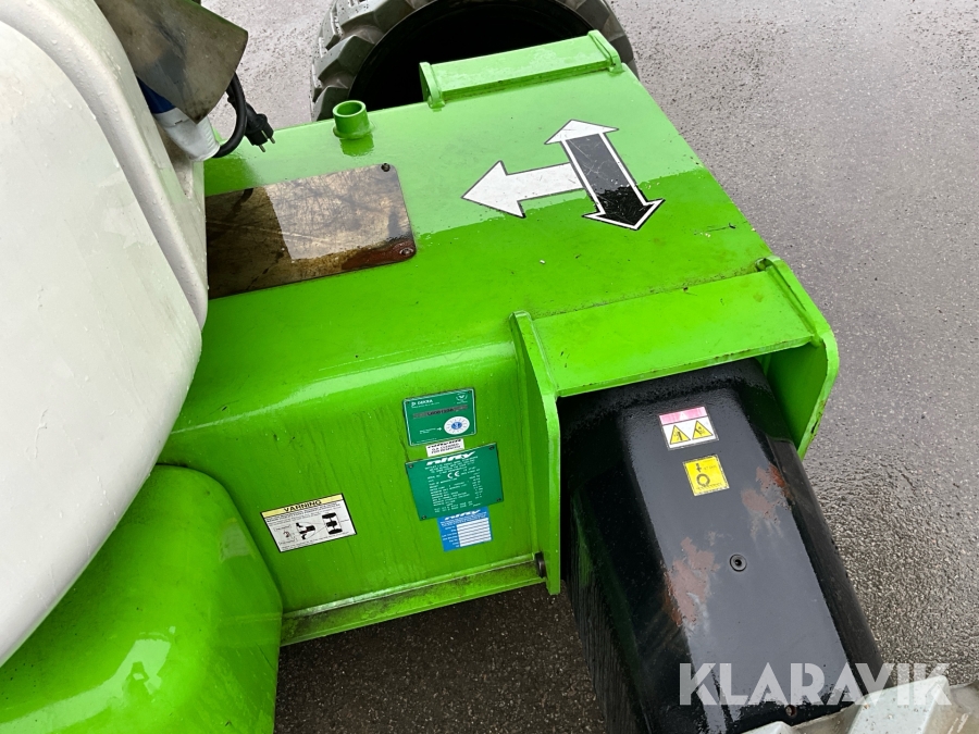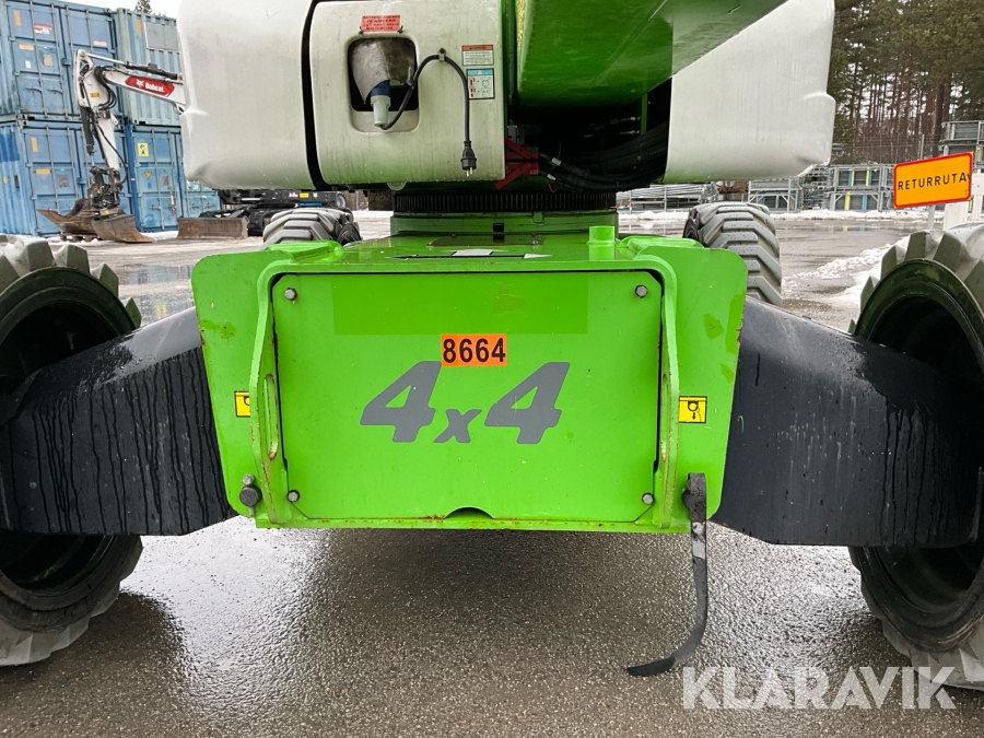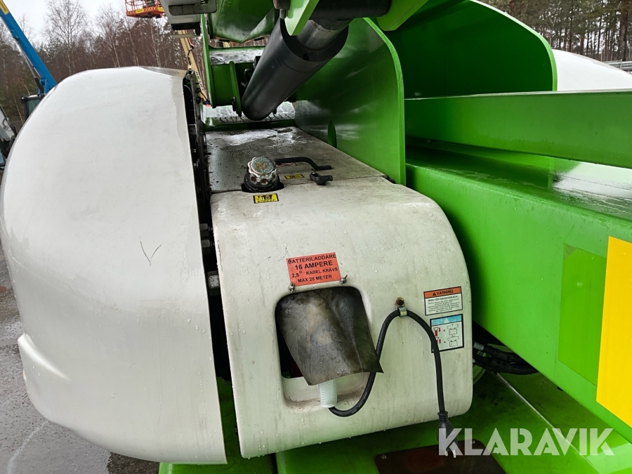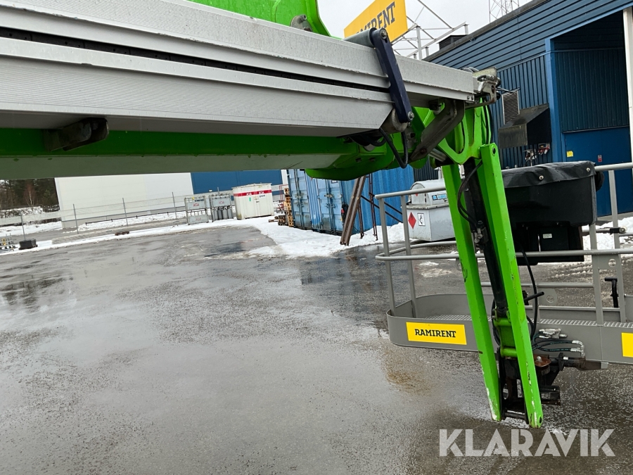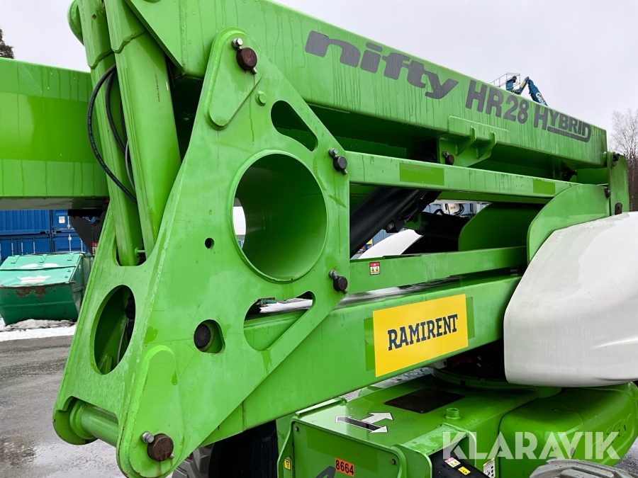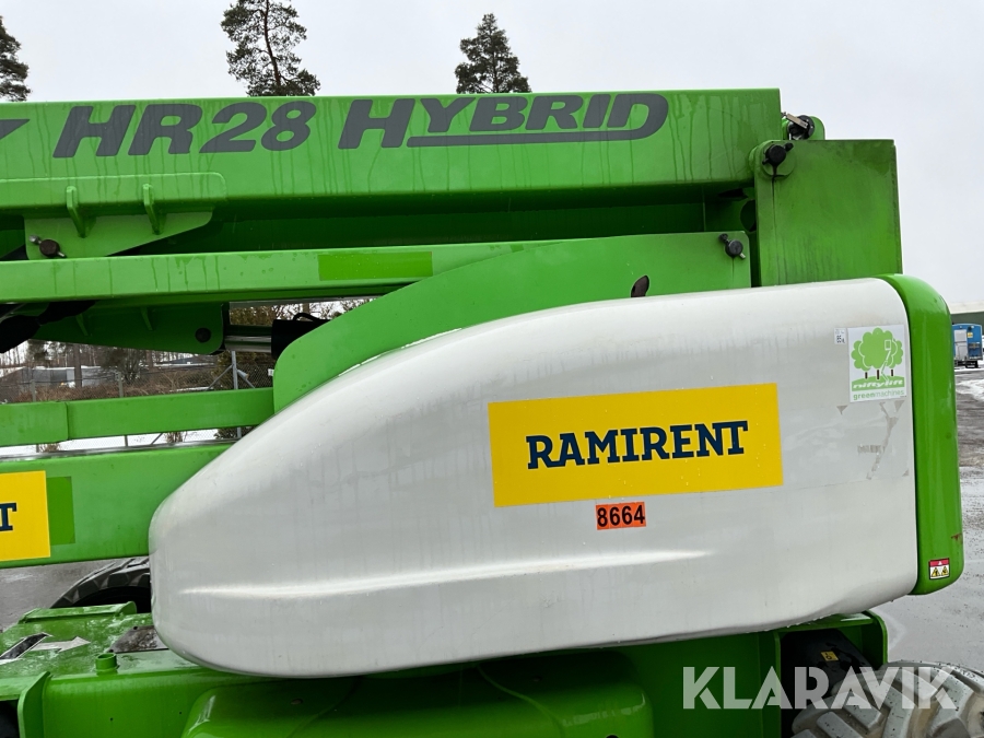 Vikbomslift med hybriddrift som klarar 28 meters arbetshöjd med bra räckvidd. Utrustad med vikarm, teleskop och jibb.