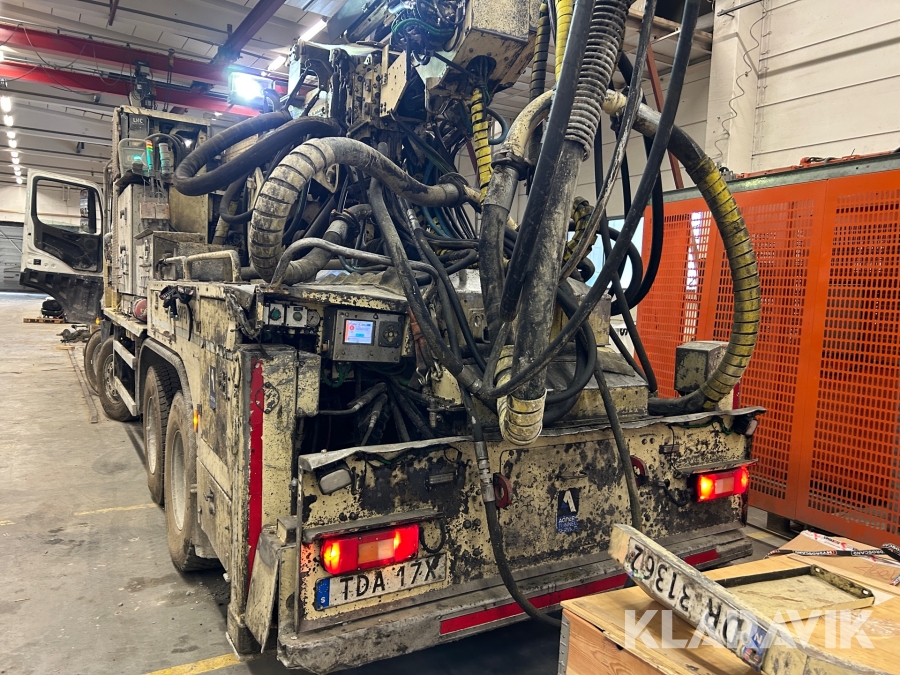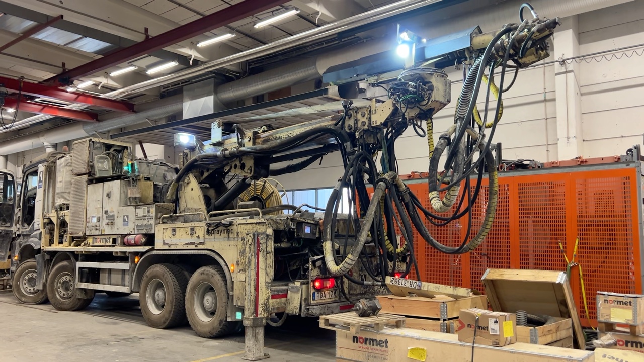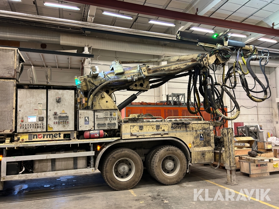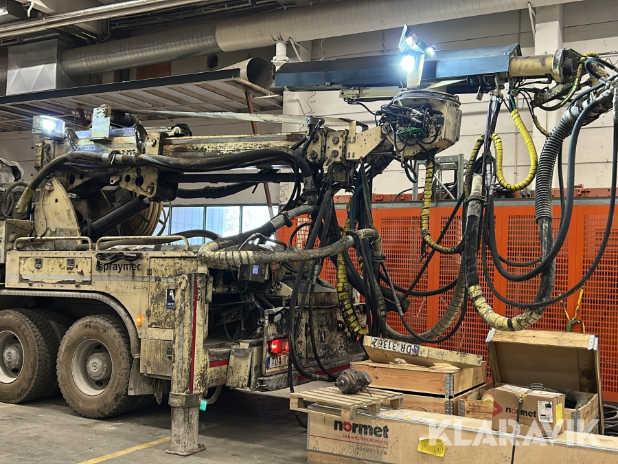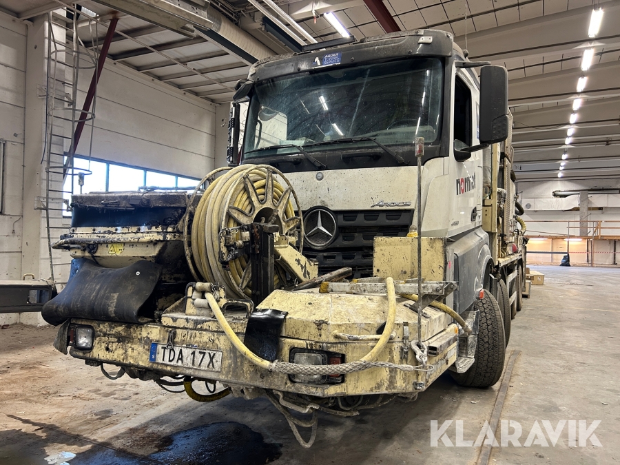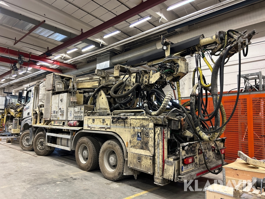 Betongsprutningsrobot Normet Spray Mec Norr Runner 140 DC på en Mercedes-Benz Arocs 4158