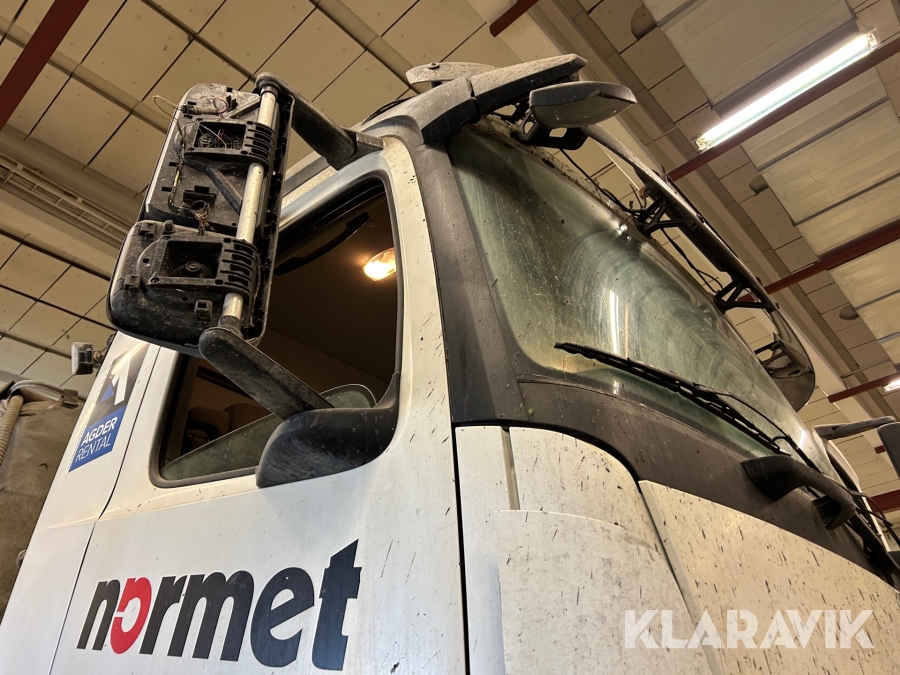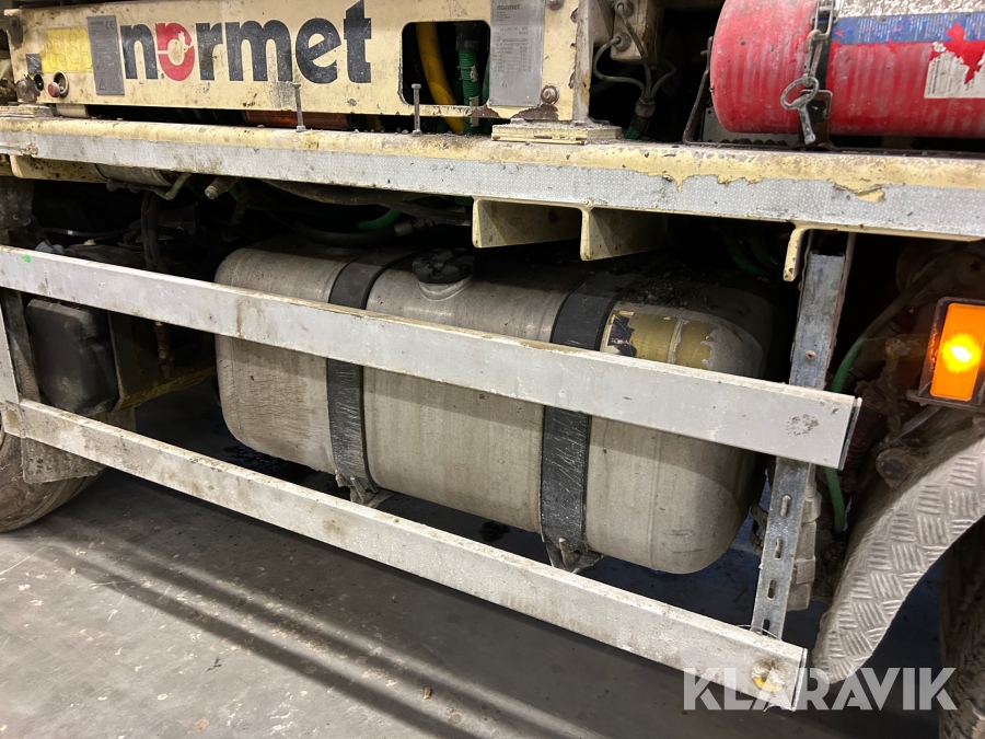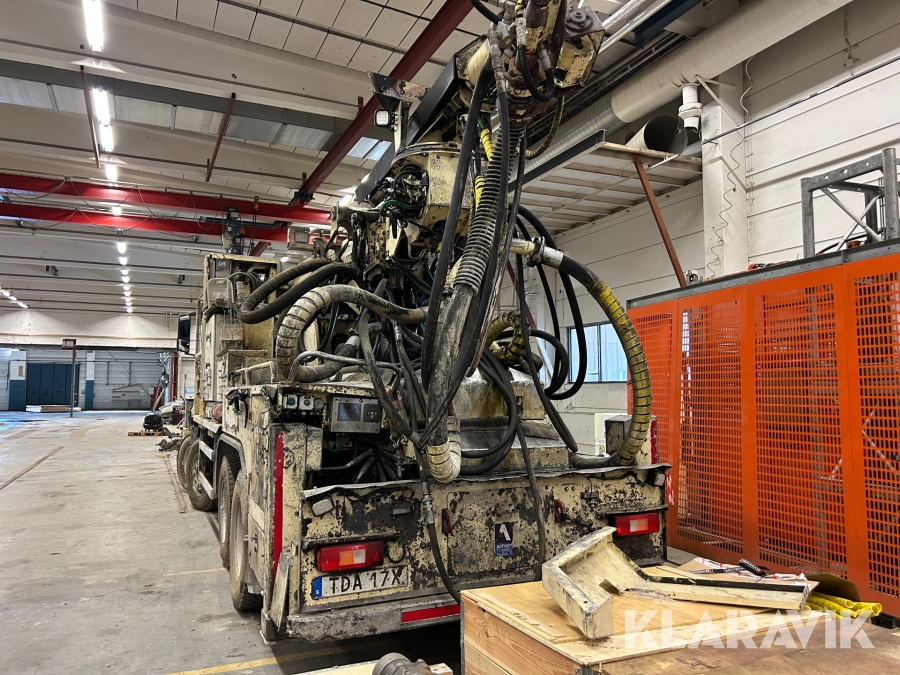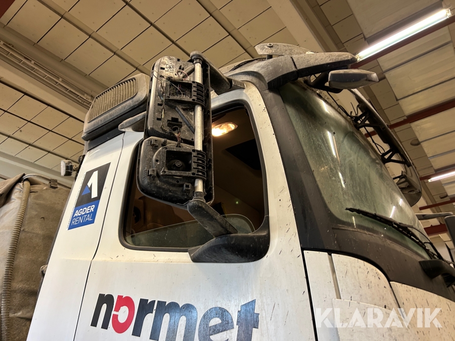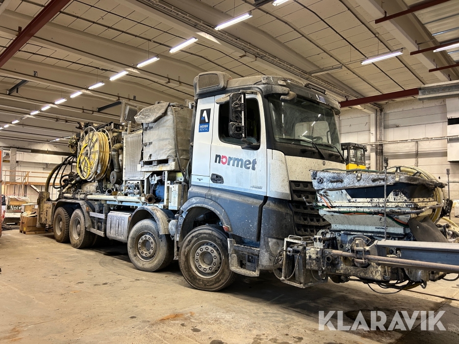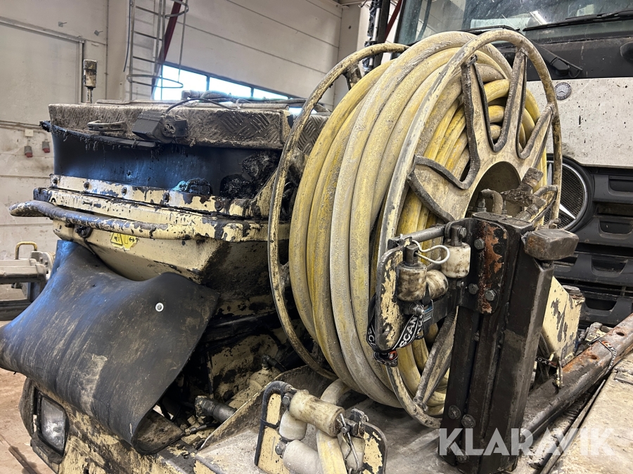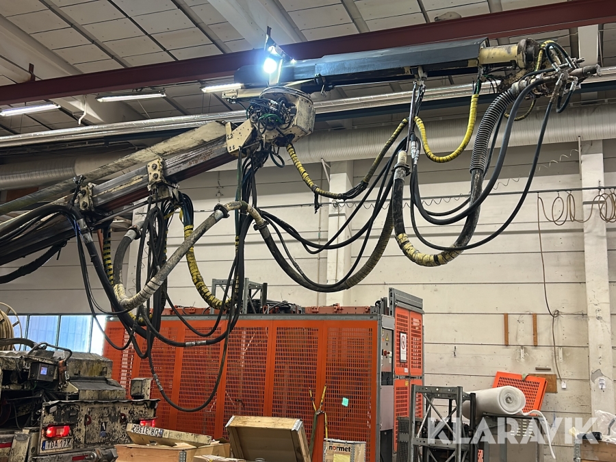 Betongsprutningsrobot Normet Spray Mec Norr Runner 140 DC på en Mercedes-Benz Arocs 4158
