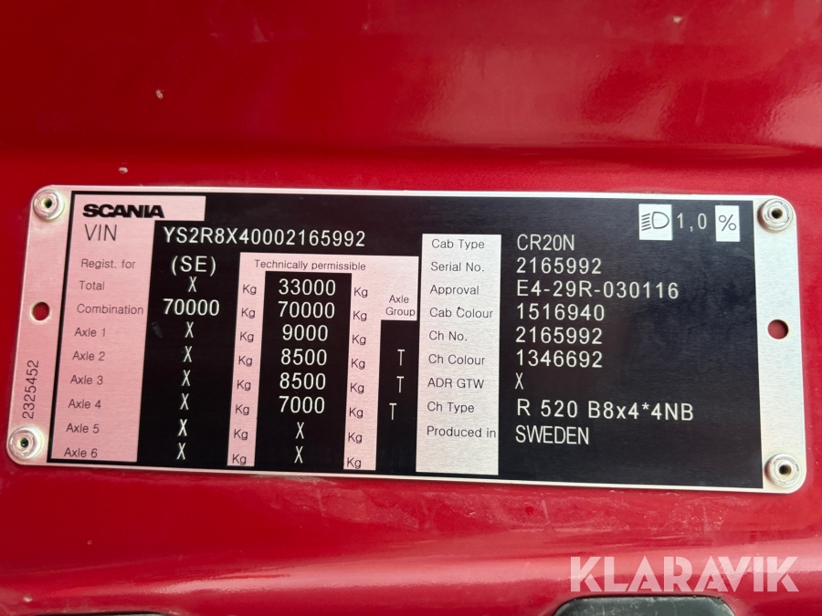 Tippbil Scania R 520B 8x4