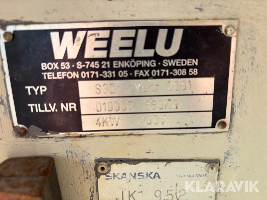 Boka frakt? Det finns ingen specifik information om frakt för just det här objektet, men om du skickar oss en förfrågan via vårt fraktformulär, så undersöker vi möjligheten. Paket, EU-pall eller större maskin? Klaravik har fraktavtal med Schenker och i de fall vi kan hjälpa till med frakt gäller det objekt som ryms i paket eller inom en EU-pall (upp till 120*80 cm och 990 kg). Det går att beställa frakt inom Sverige, dock inte till utlandet. Vid frakt på större maskiner rekommenderar vi gärna transportföretag som du kan kontakta.