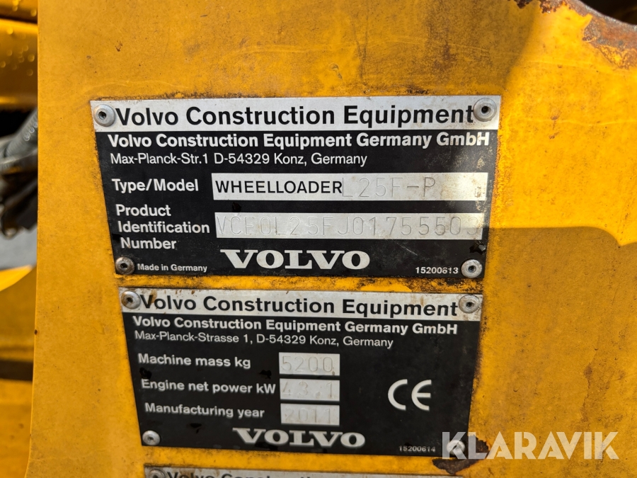Hjullastare Volvo L25F med flera redskap