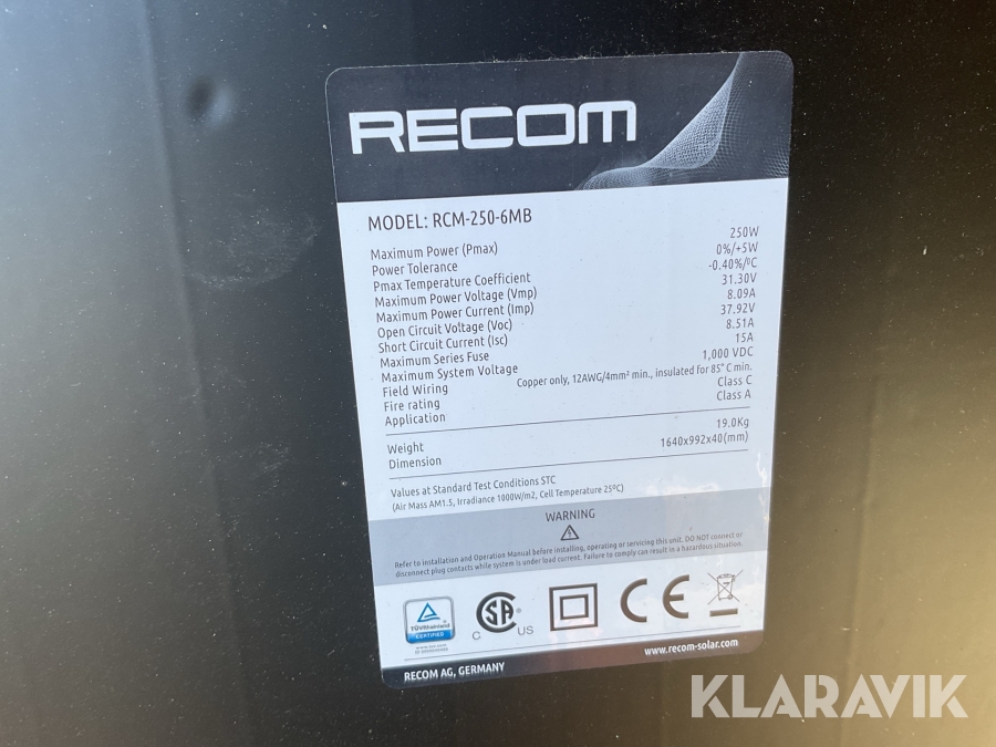 Solceller Recom RCM-250-6MB 30st med växelriktare
